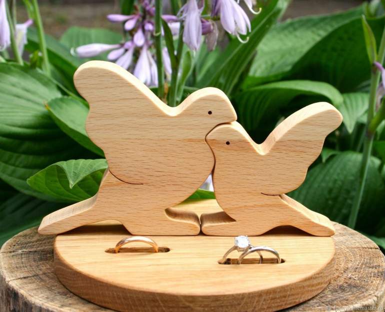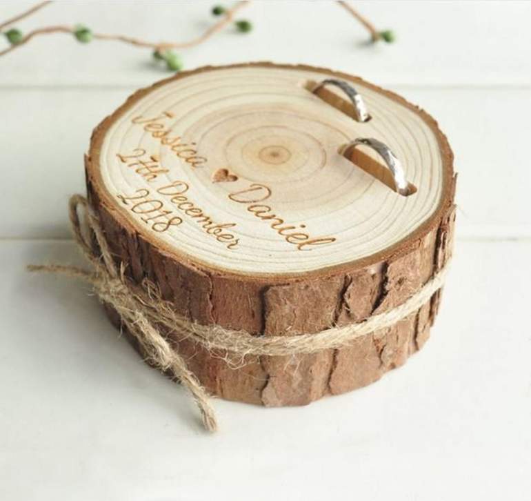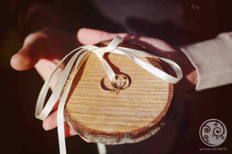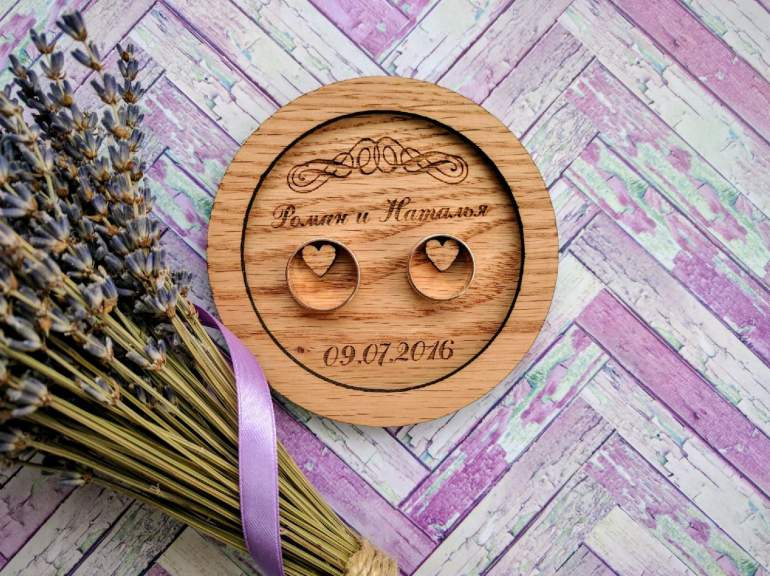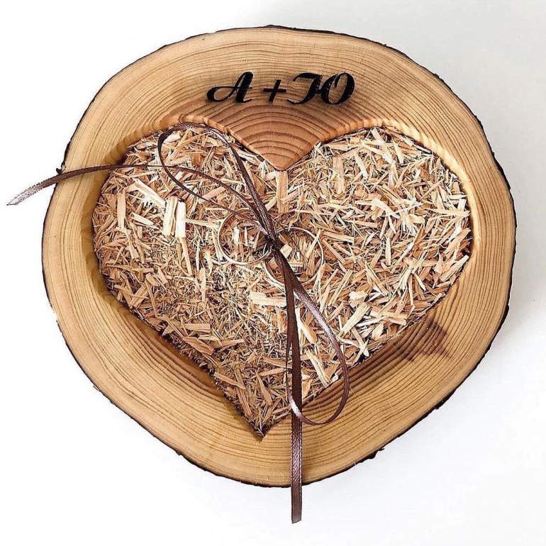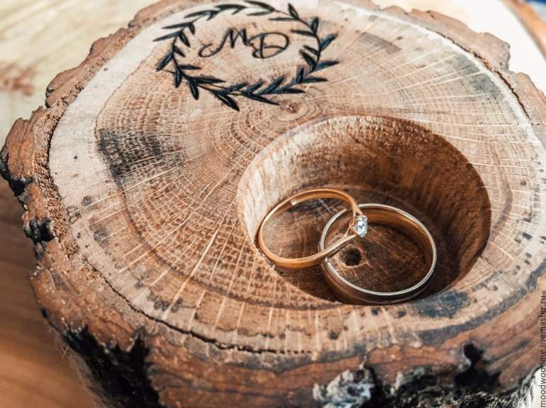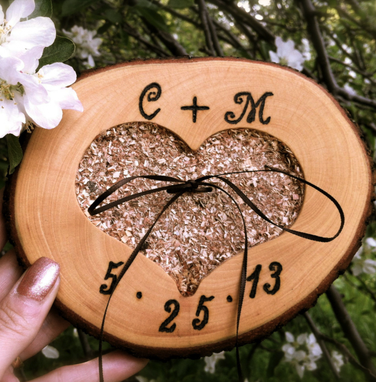 Древесная подушечка для колец на свадьбу