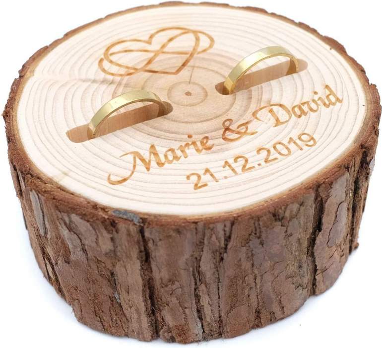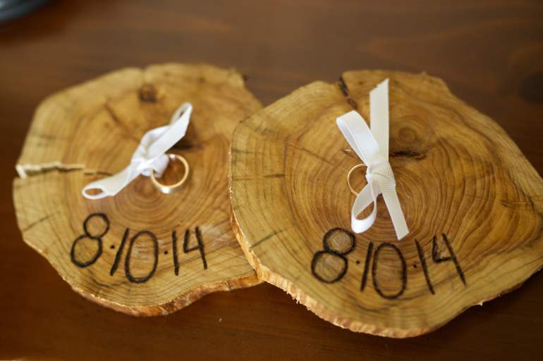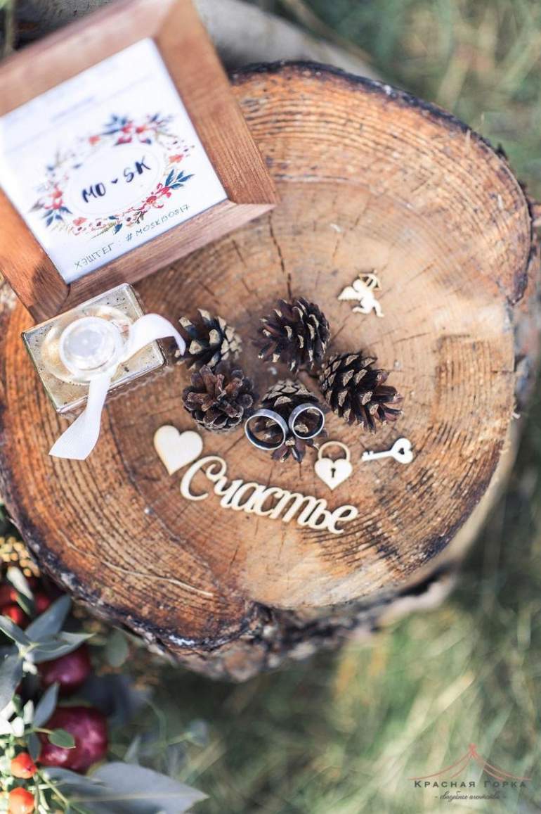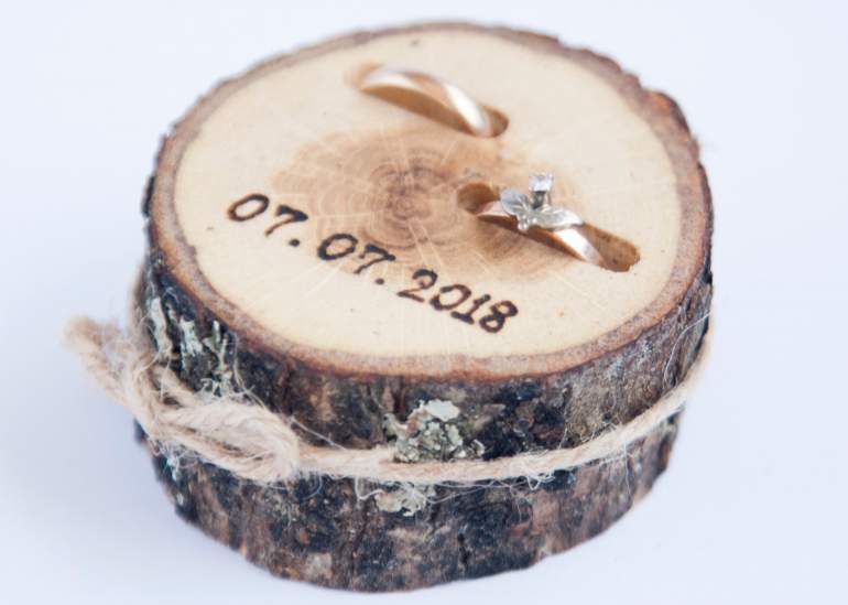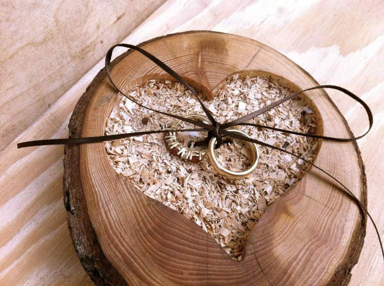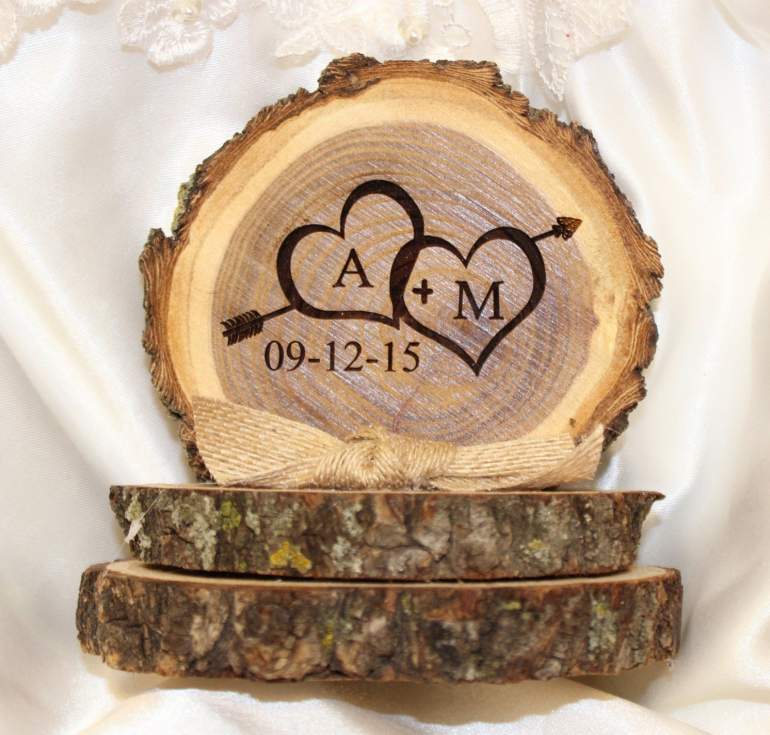 Древесная подушечка для колец на свадьбу