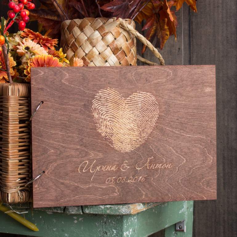 Древесный свадебный фотоальбом