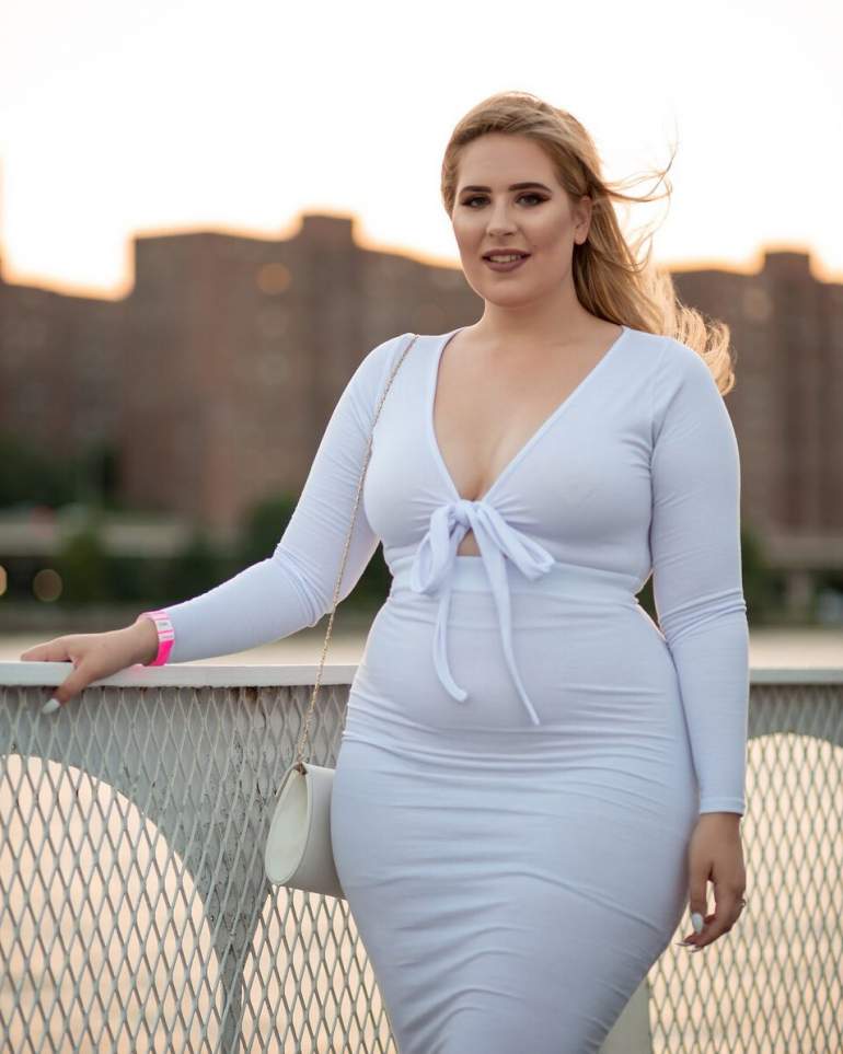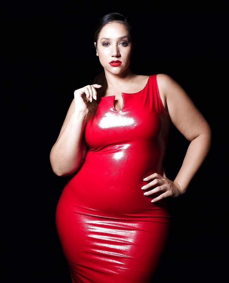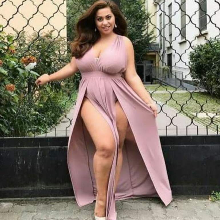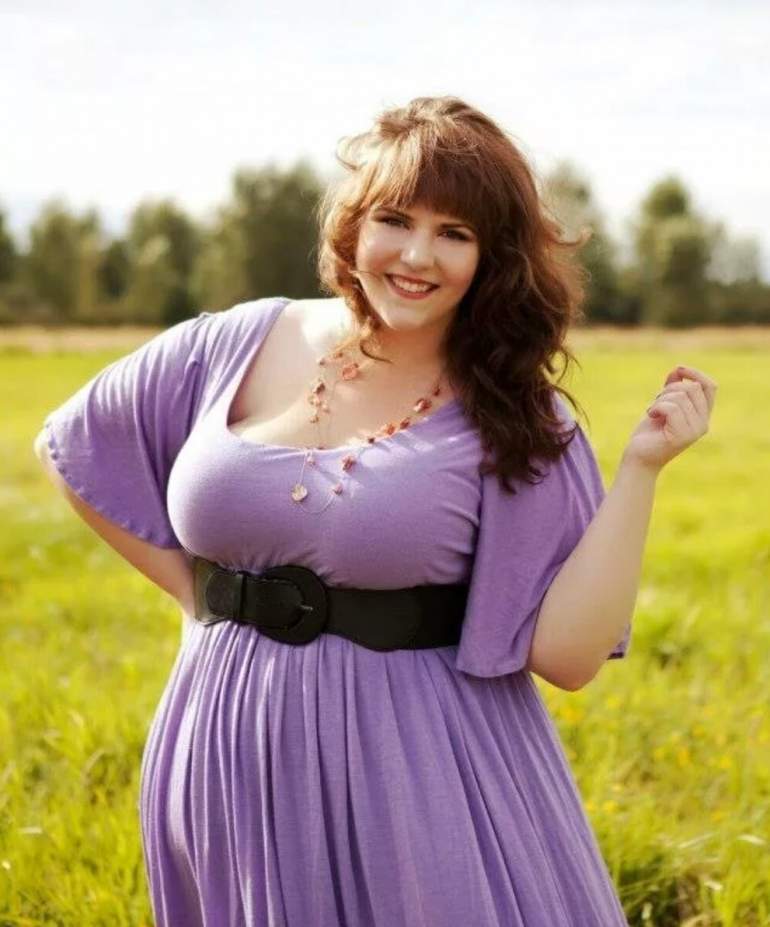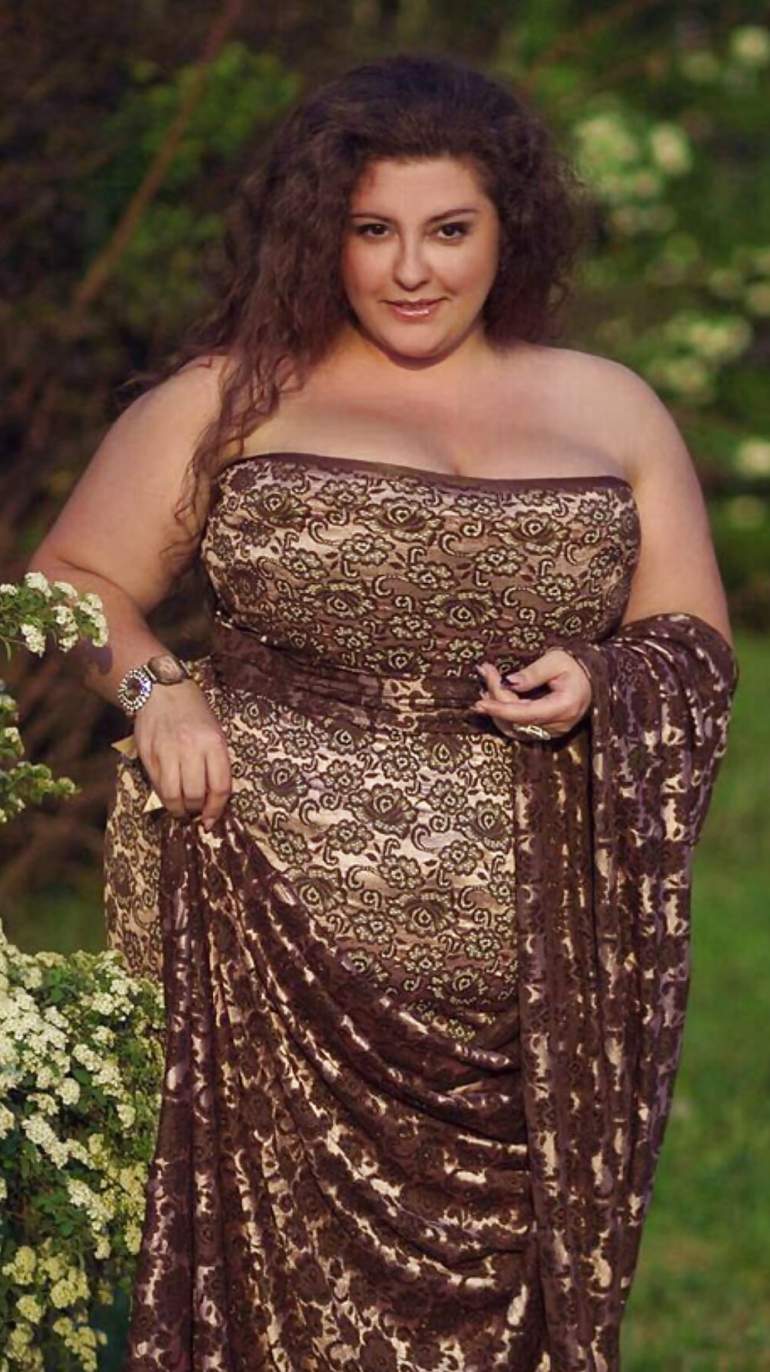 Прекрасная девушка красотка с пышноватыми формами в платье