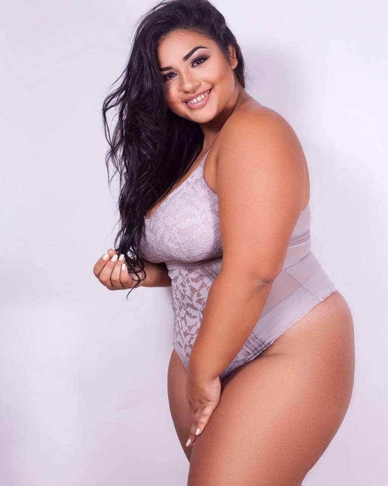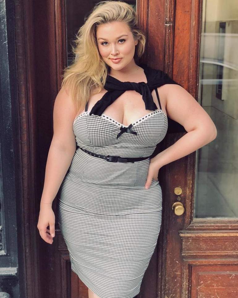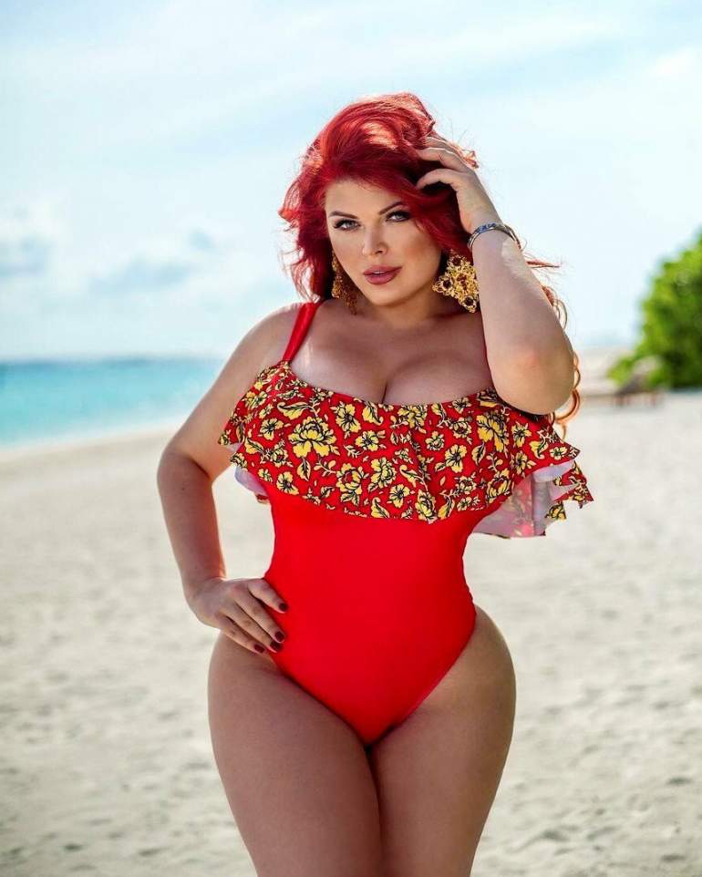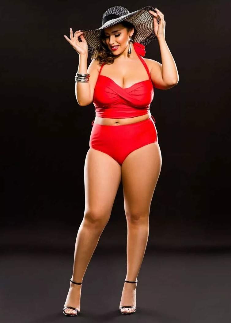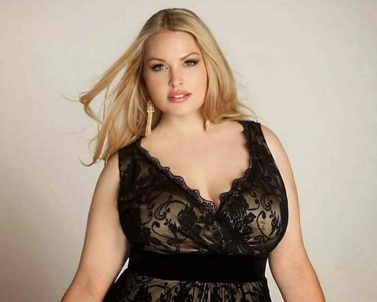 Прекрасная девушка красотка с пышноватыми формами в платье