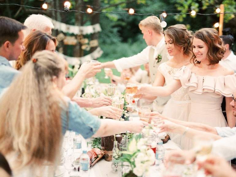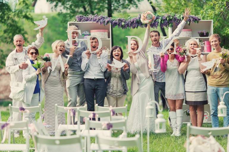 Молодожены с гостями