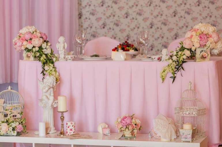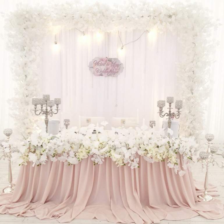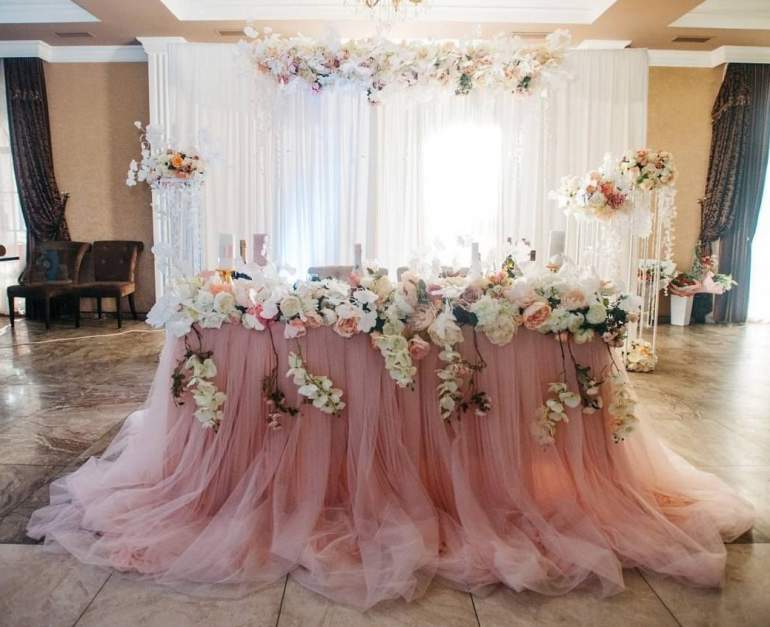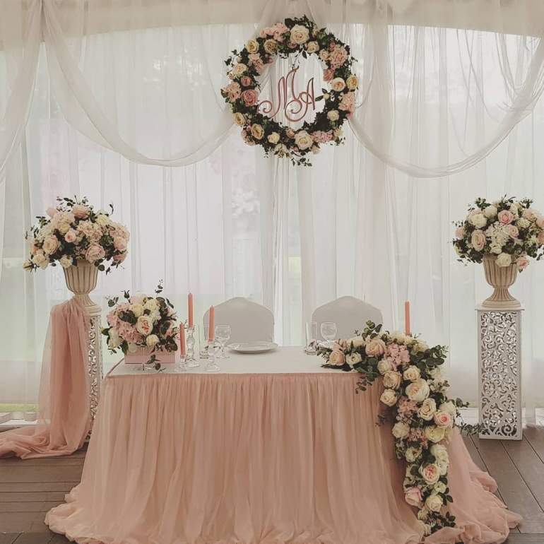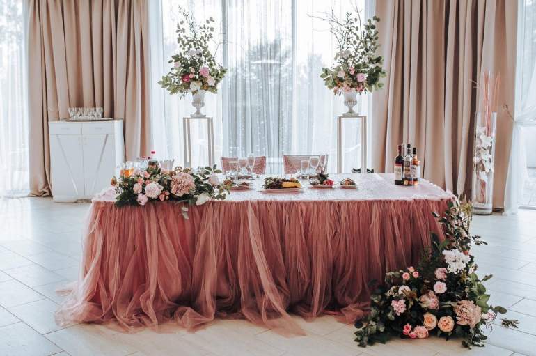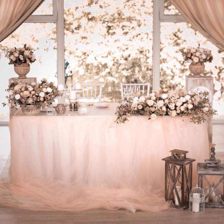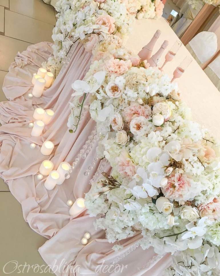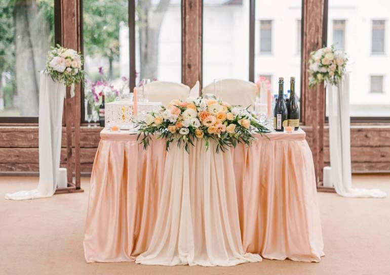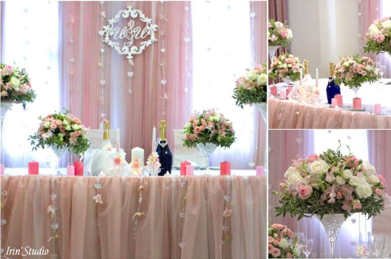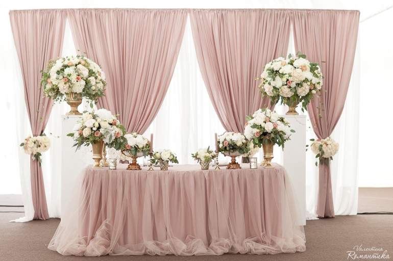 Украшение свадебного стола пудровый цвет