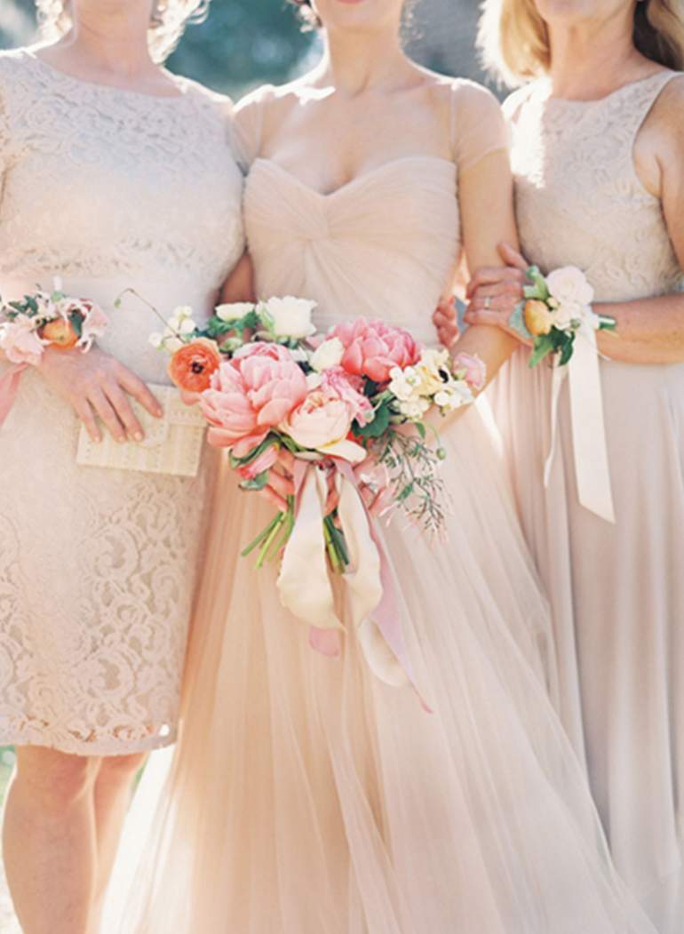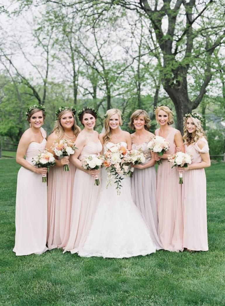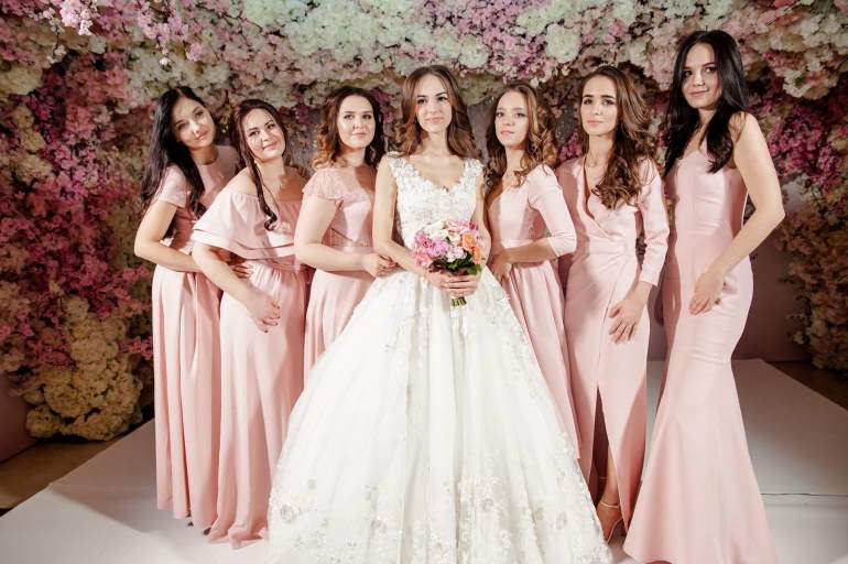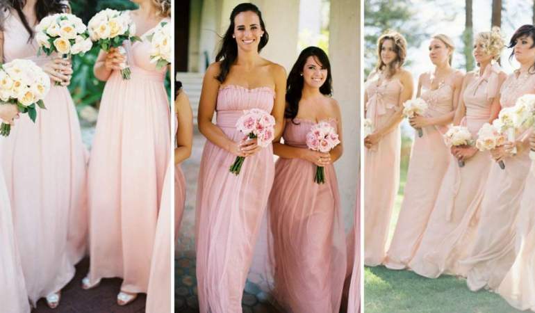 Пудровые красивые платья для подружек невесты
