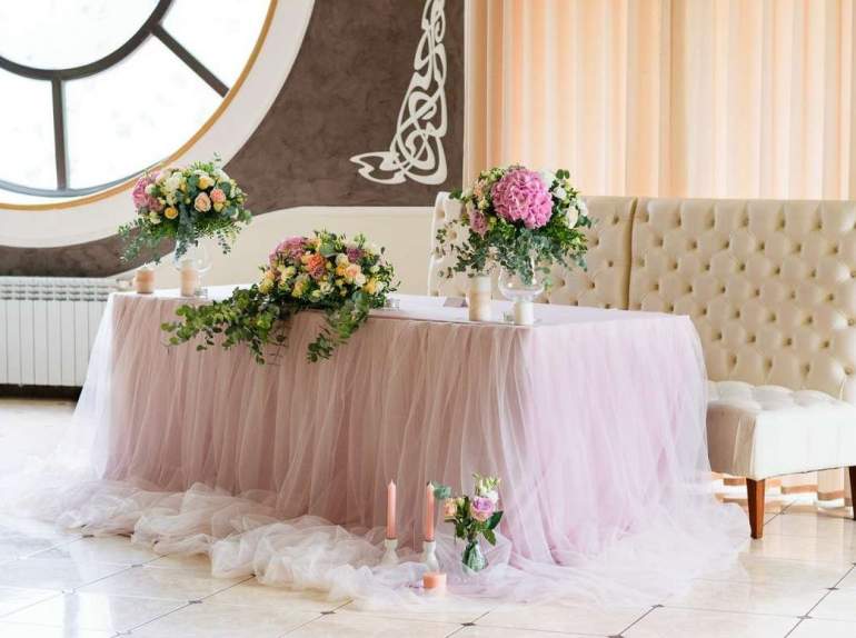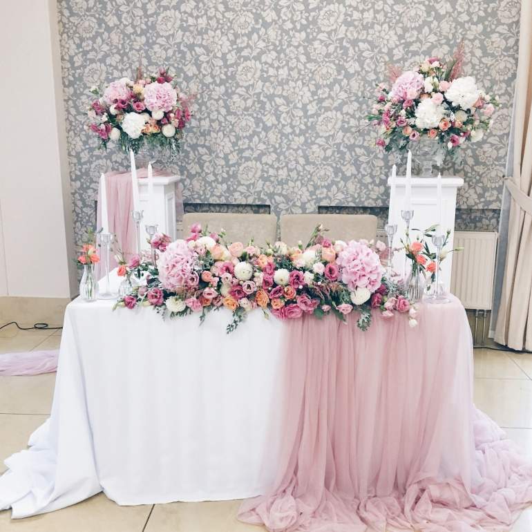Украшение свадебного стола цветами