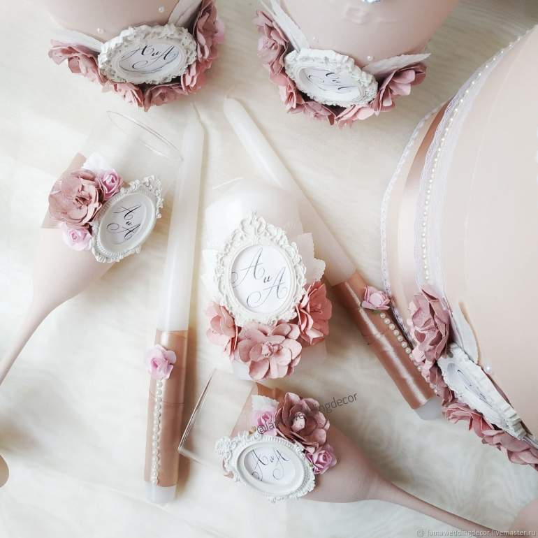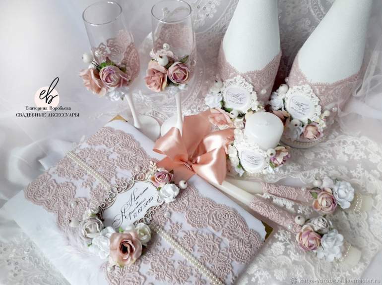 Свадебные аксессуары в пудровом цвете