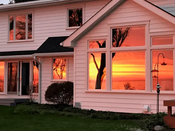 Закат в окнах дома