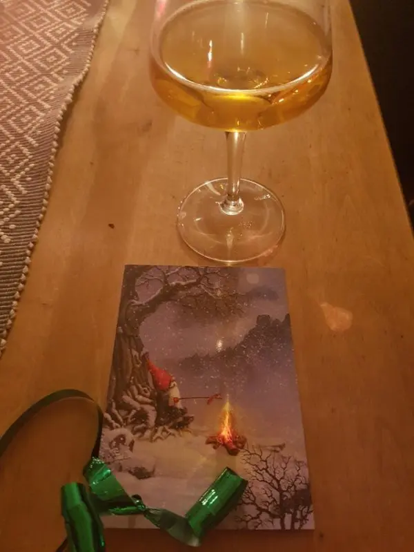 Отражение пива отдало огоньку костру на рождественской открытке