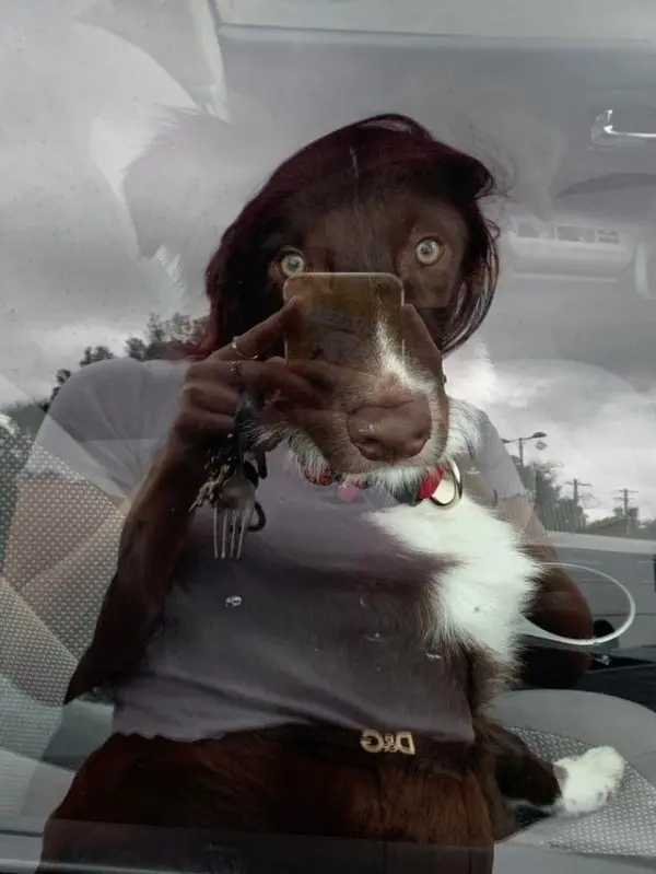 Собачка с париком на голове
