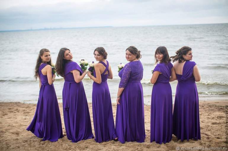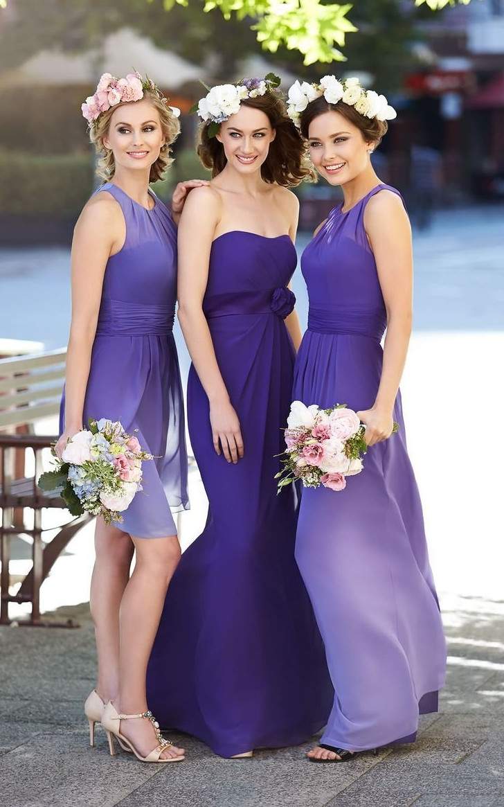 Красивые платья для подружек невесты в фиолетовых тонах