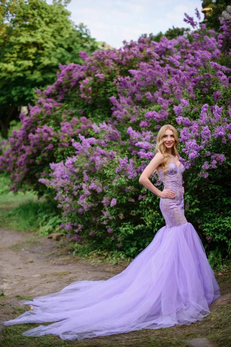 Сиреневое свадебное платье