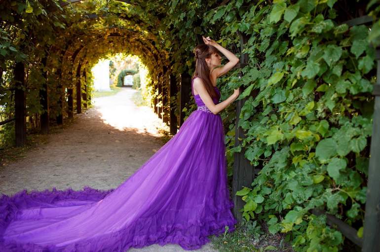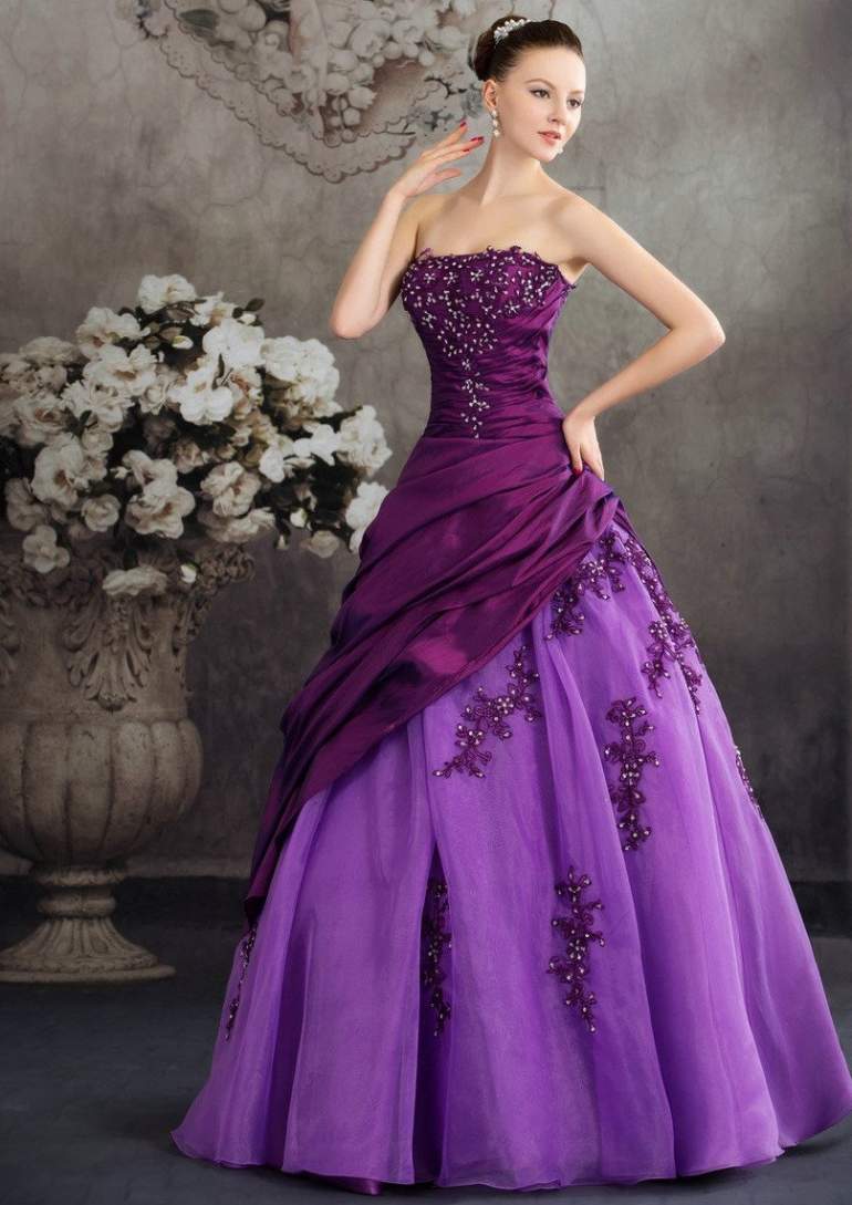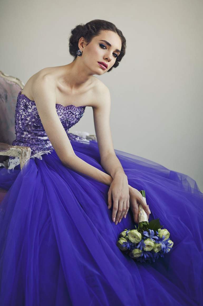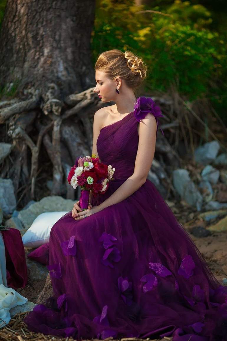 Фиолетовое свадебное платье