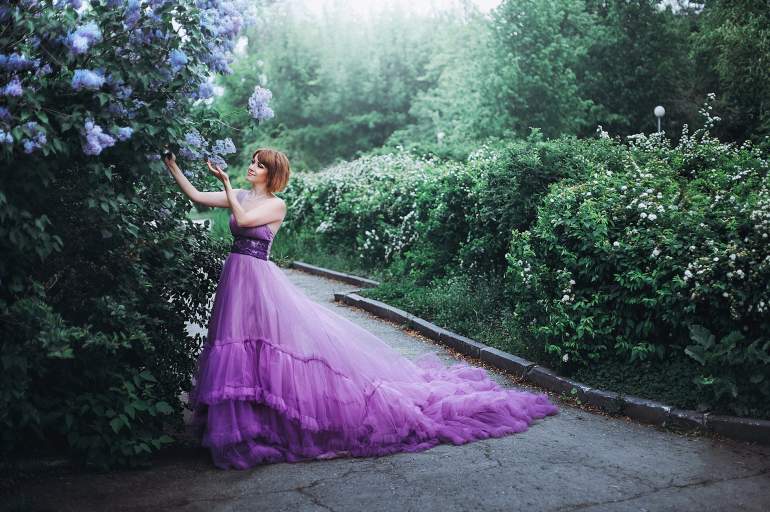 Девушка красавица в лавандовом платье