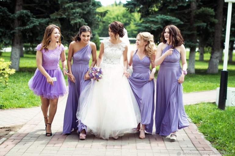 Сиреневые красивые платья для подружек невесты