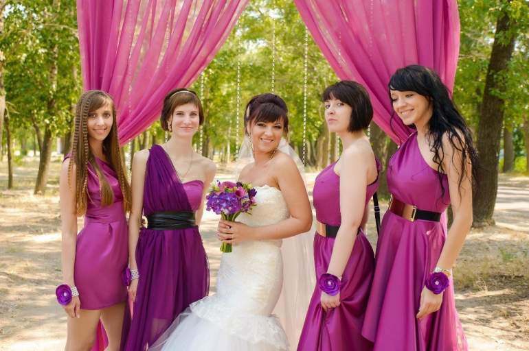 Фиолетовые красивые платья подружек невесты