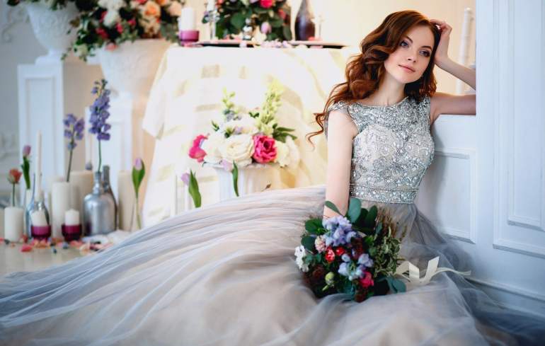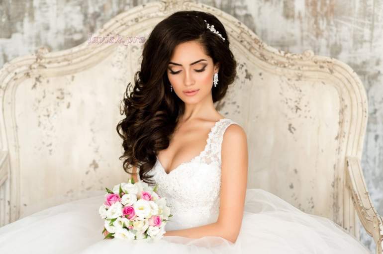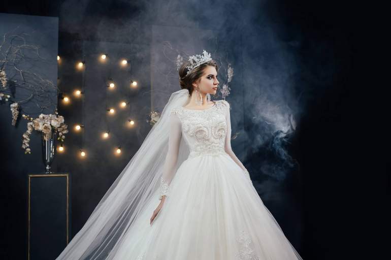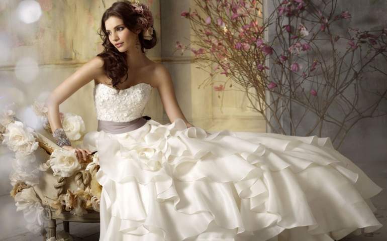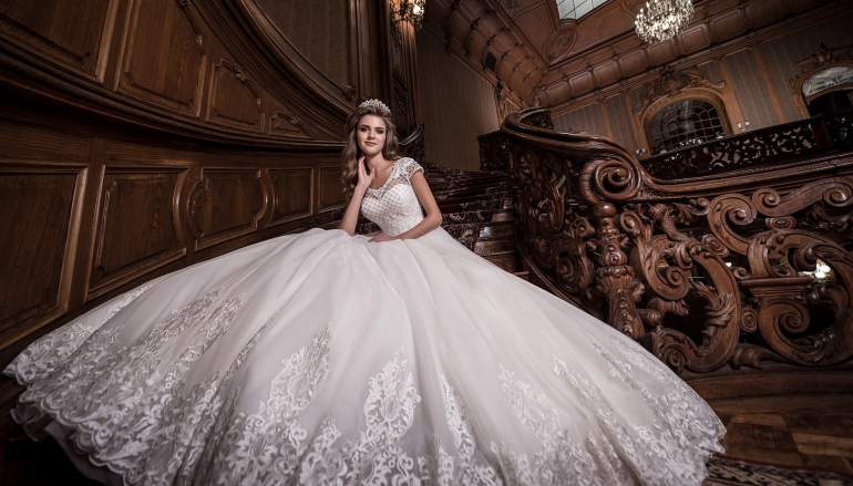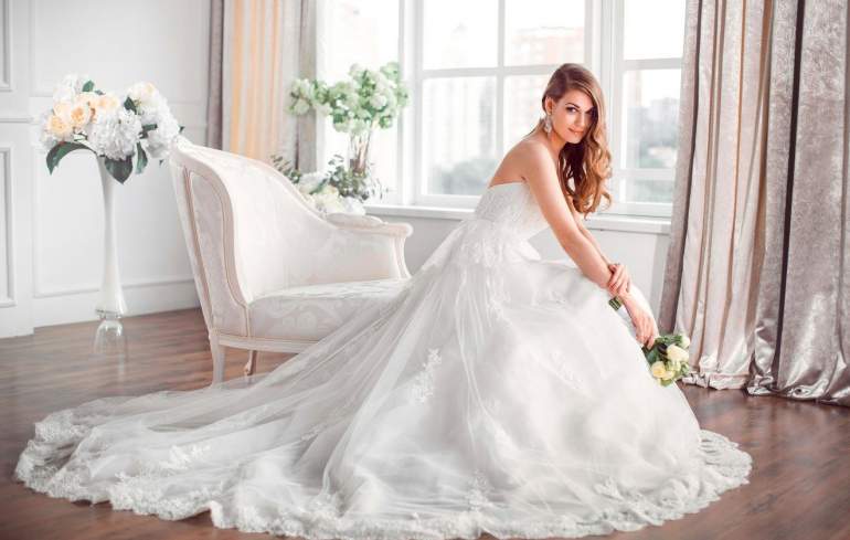 Девушка красавица в роскошном свадебном платье