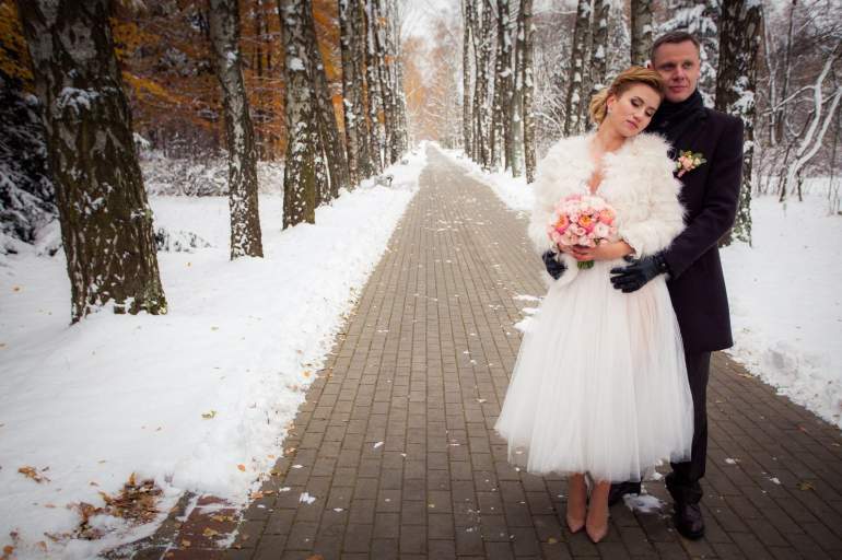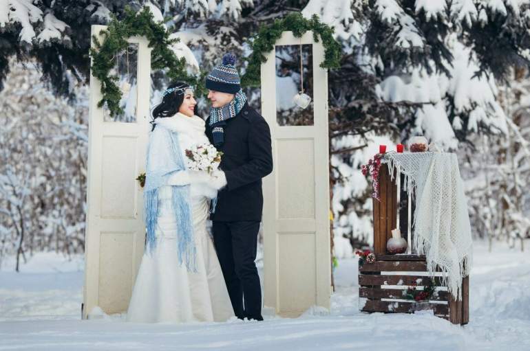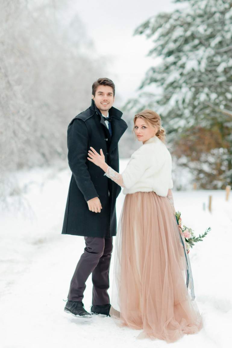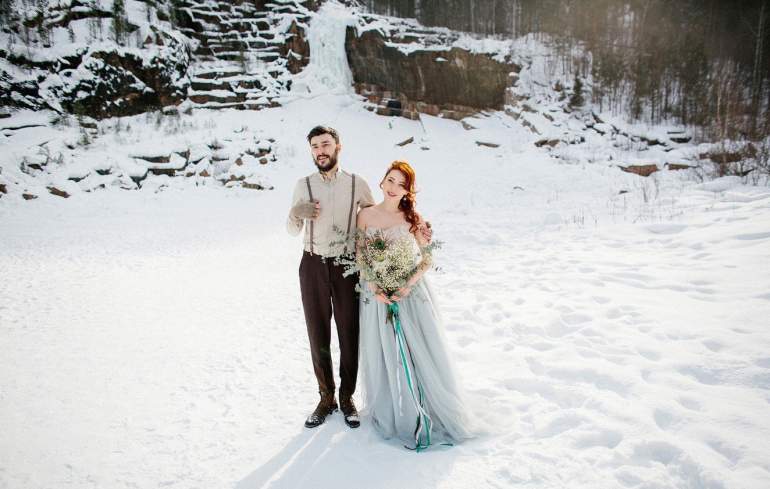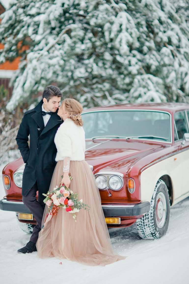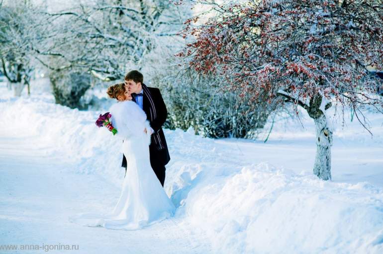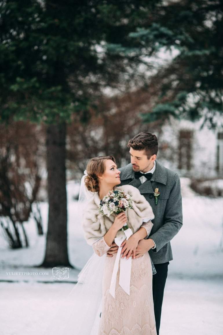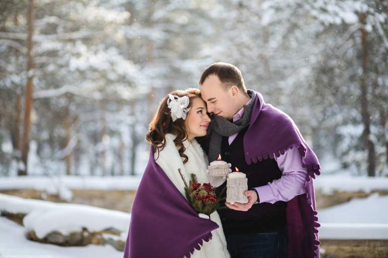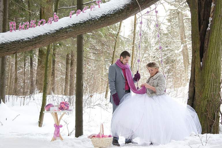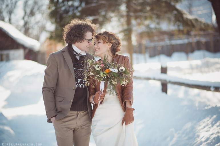 Фотосессия ситцевой свадьбы в зимнюю пору