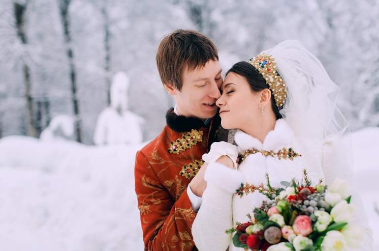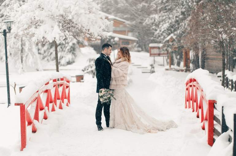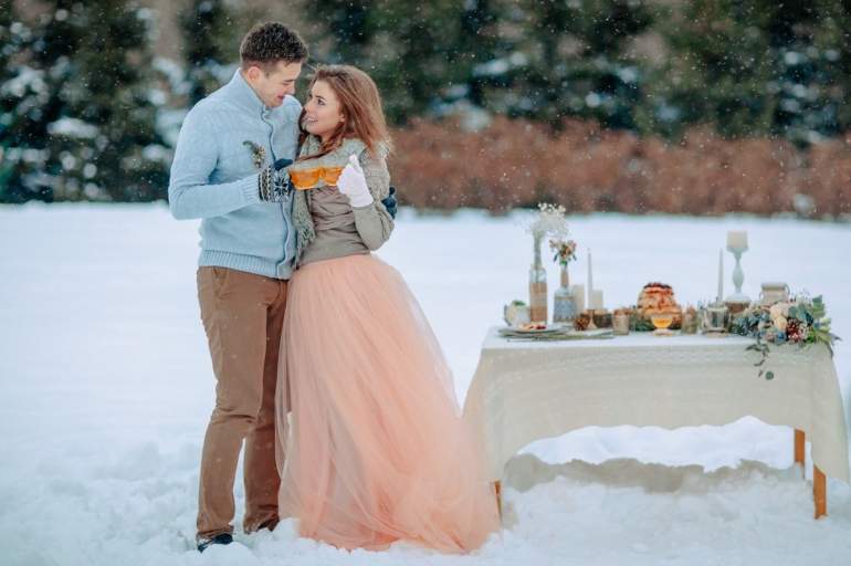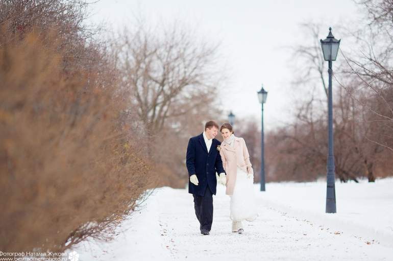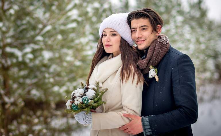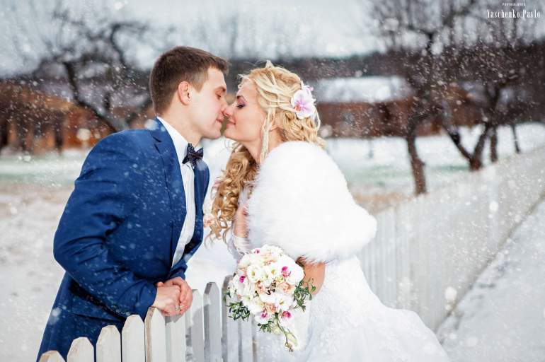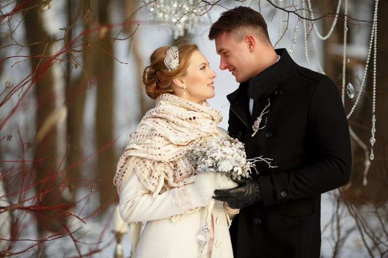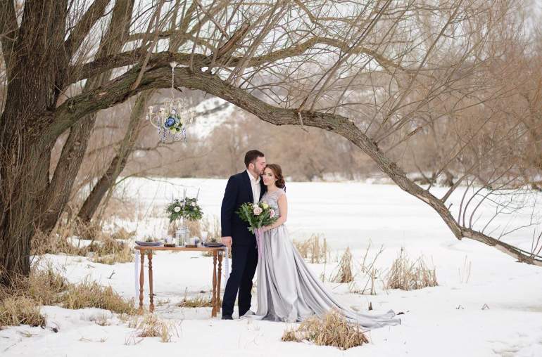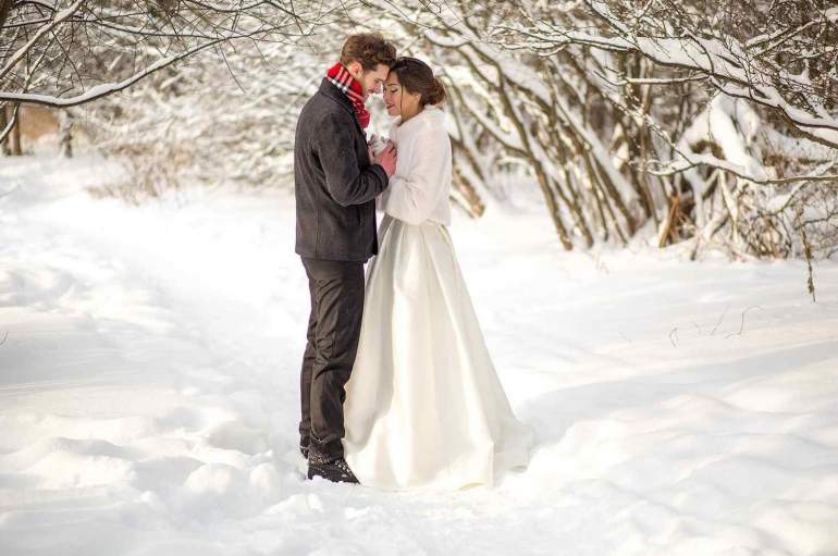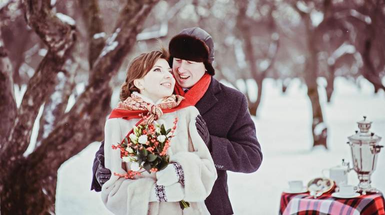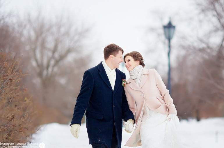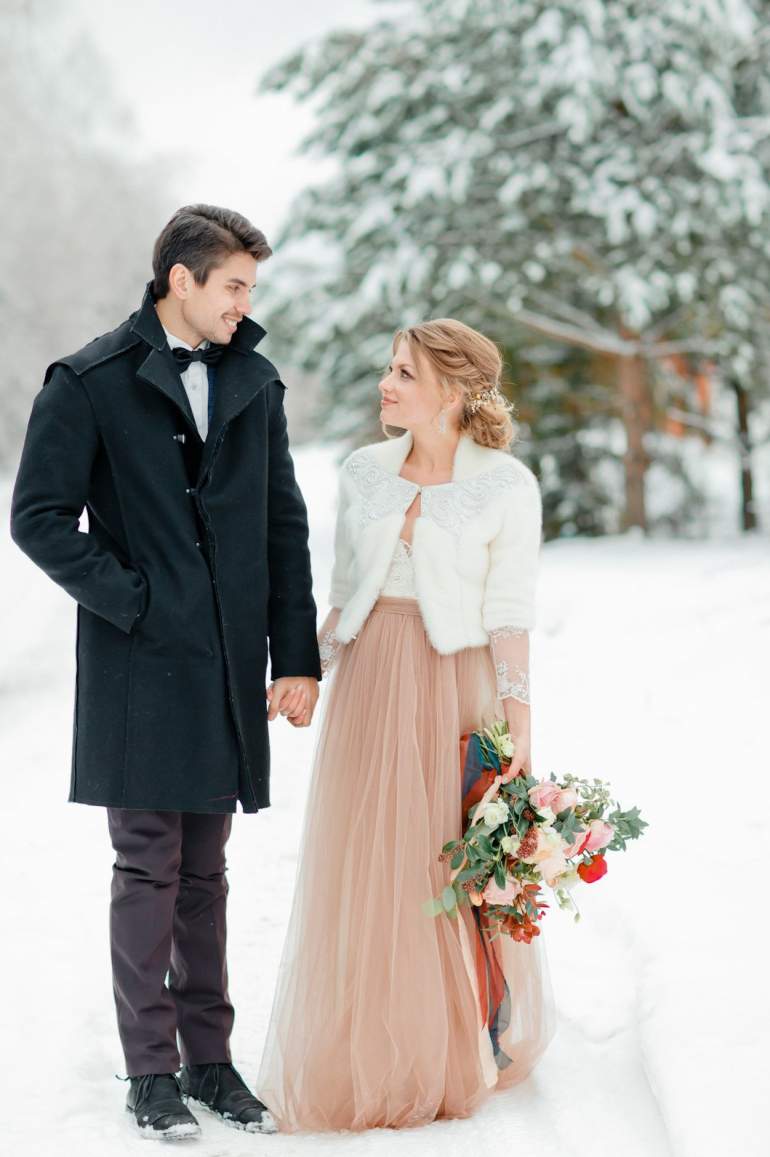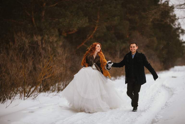 Фотосессия ситцевой свадьбы в зимнюю пору