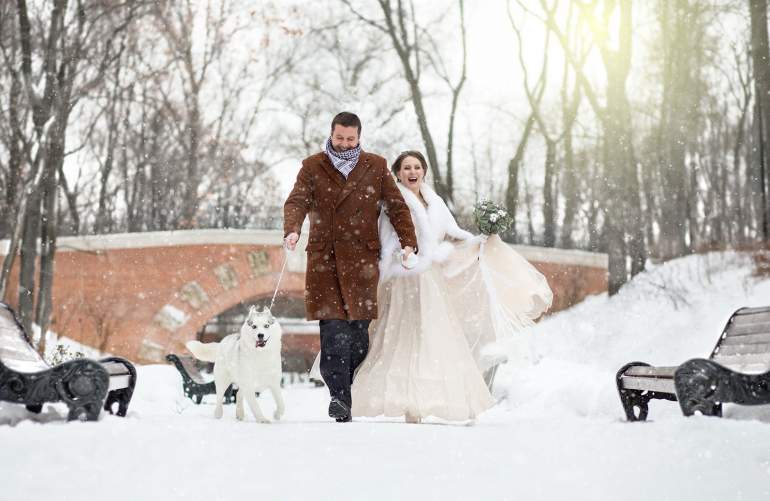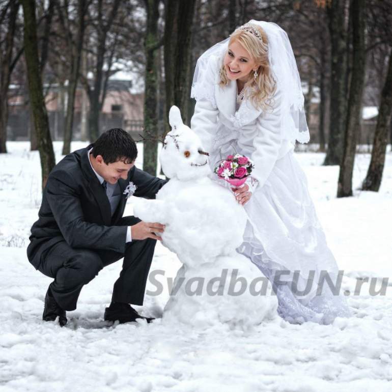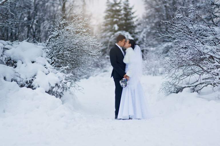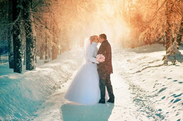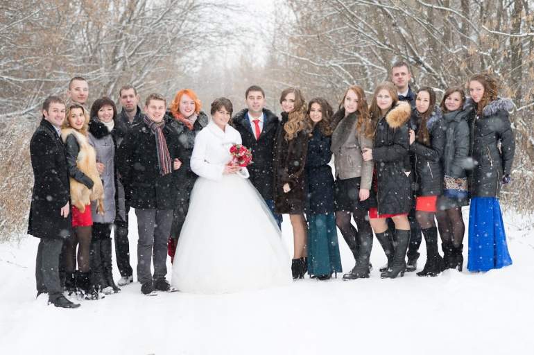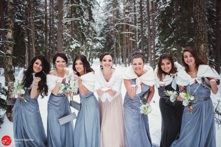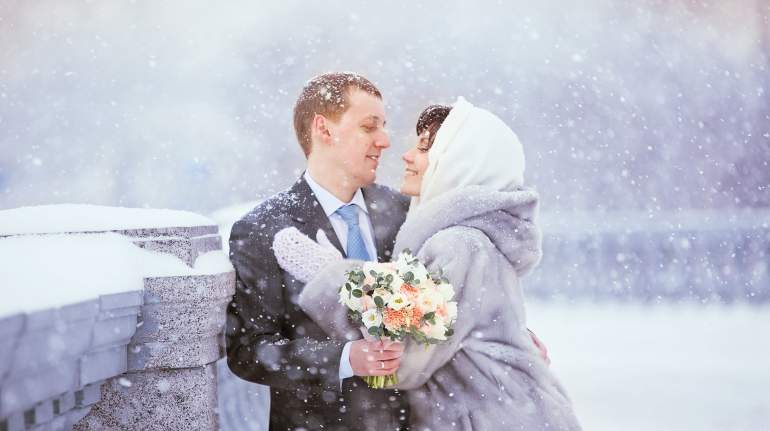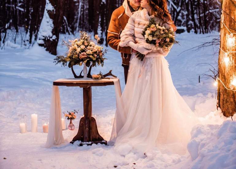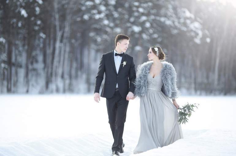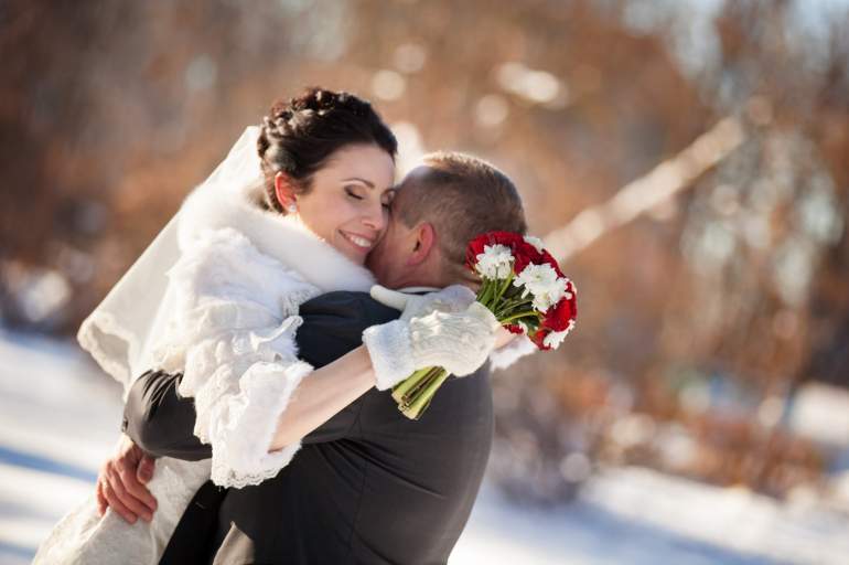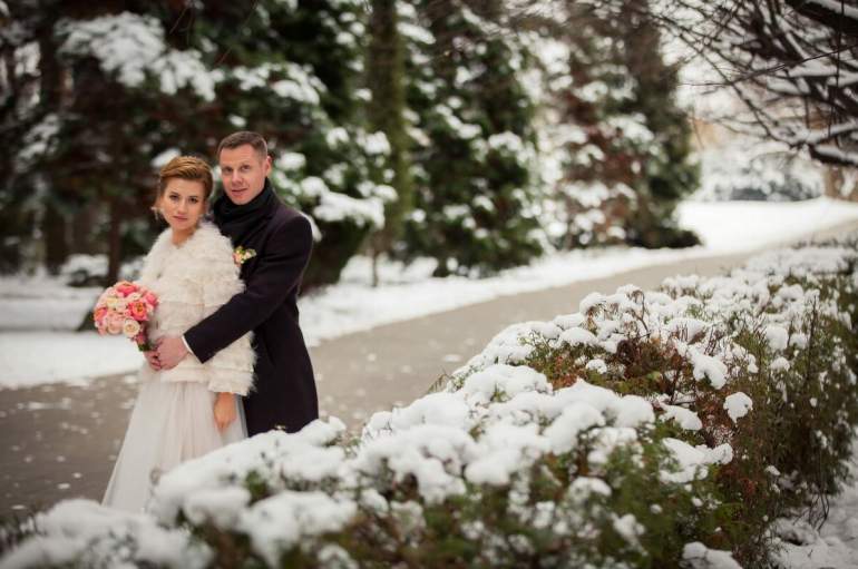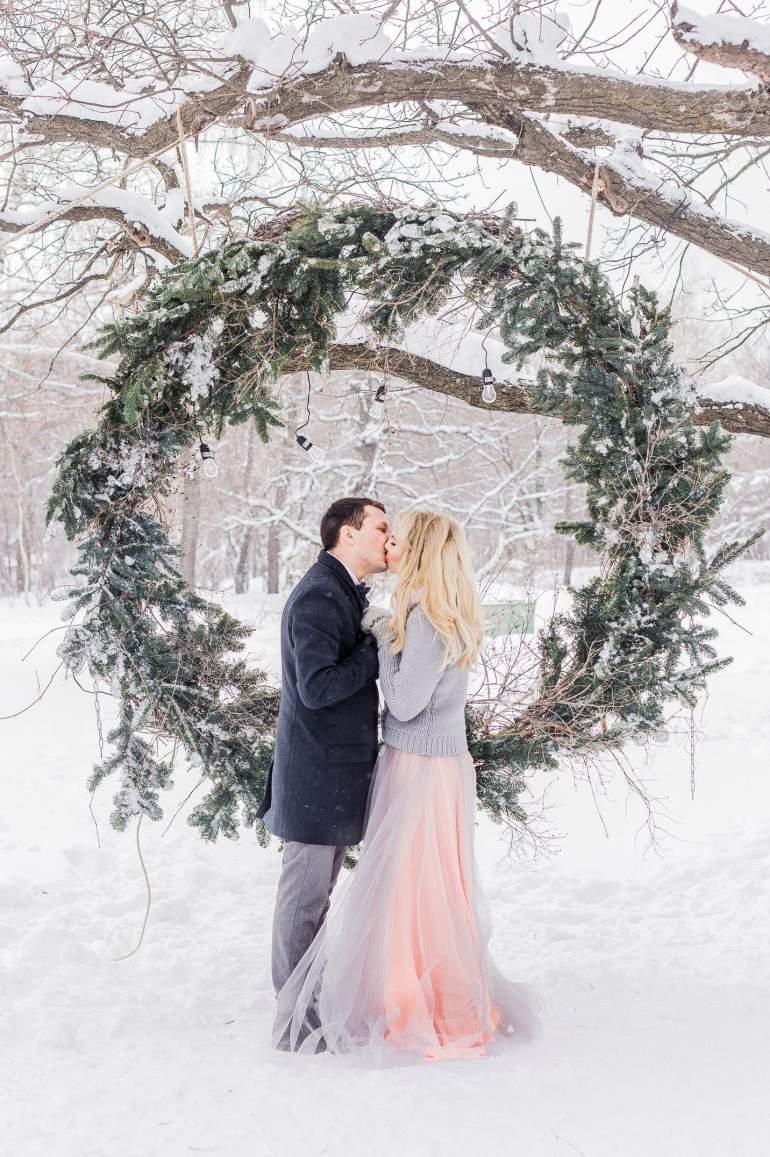 Фотосессия ситцевой свадьбы в зимнюю пору