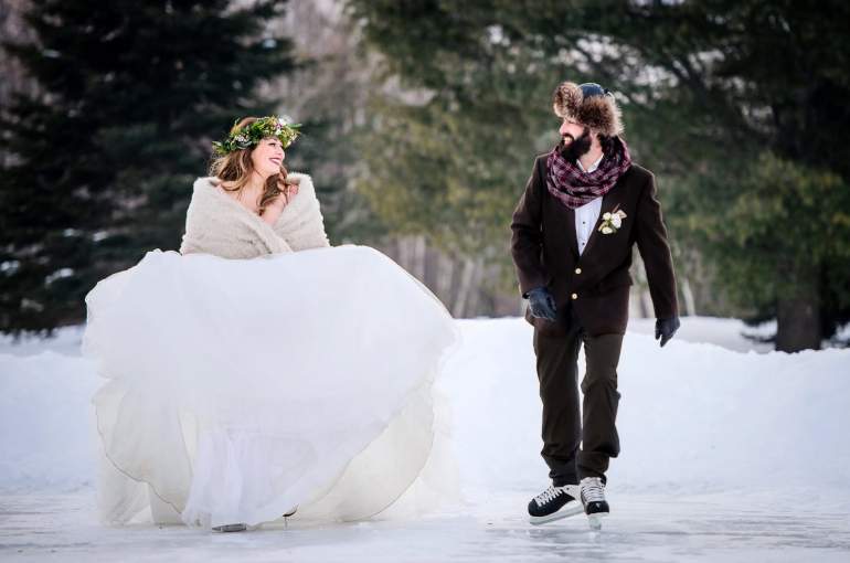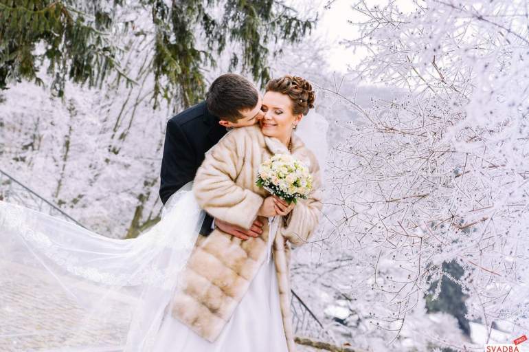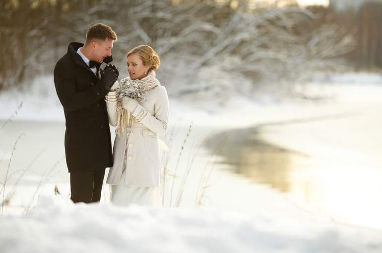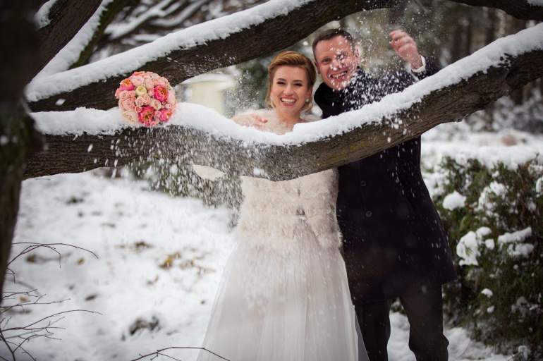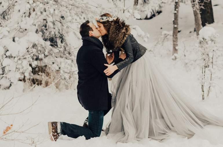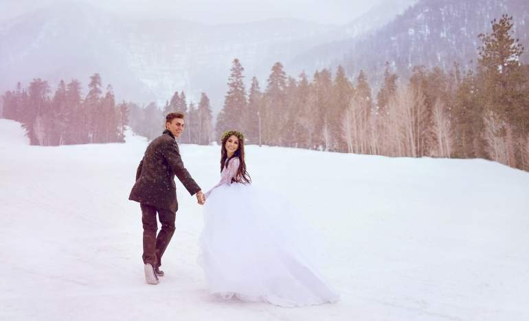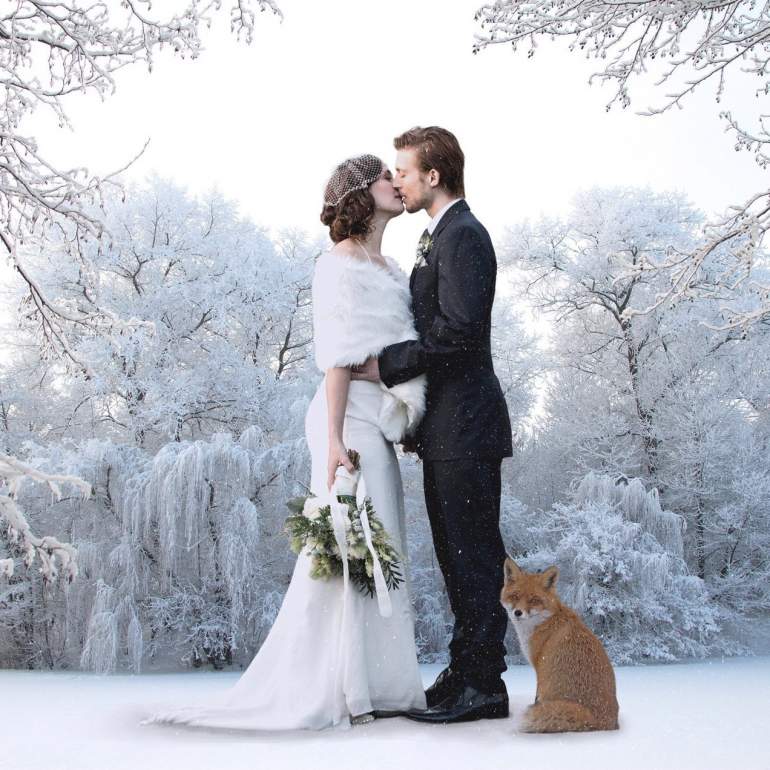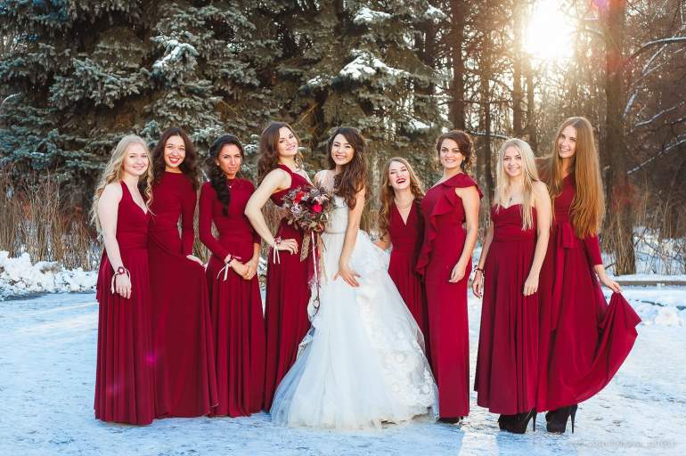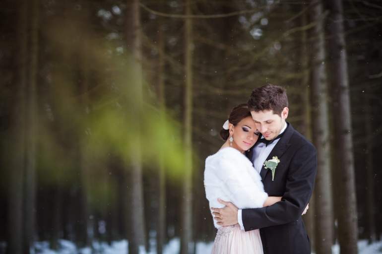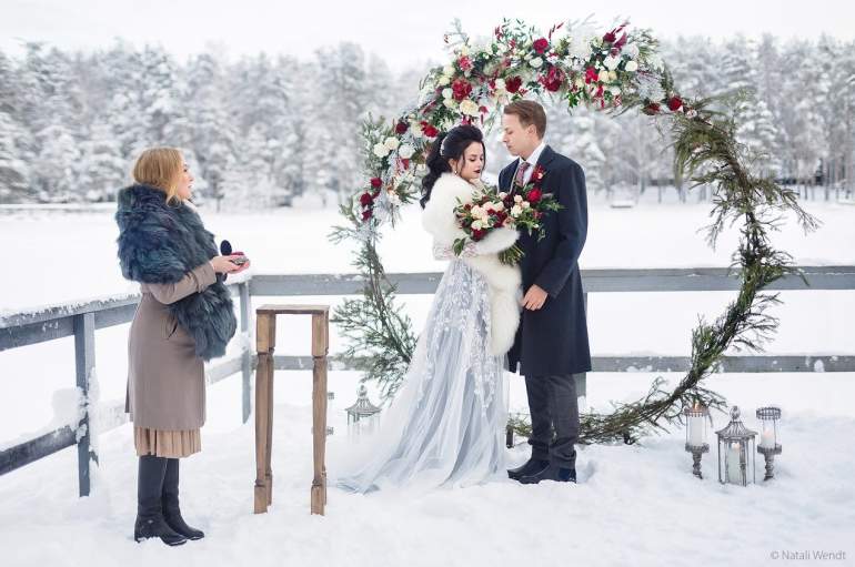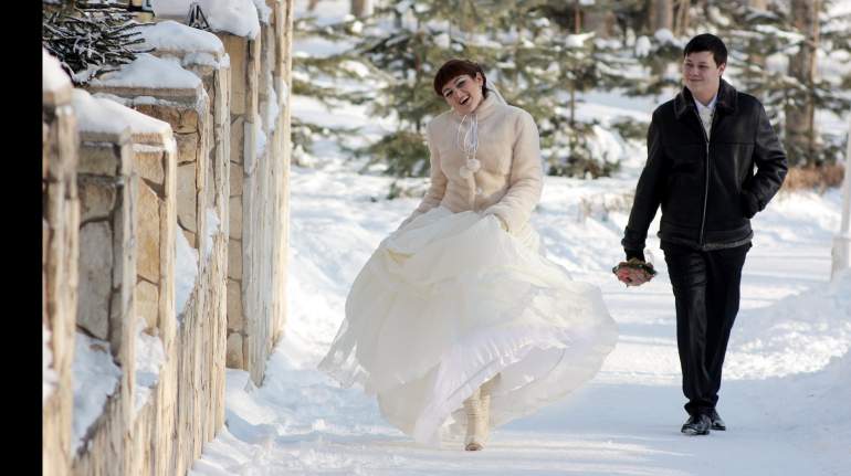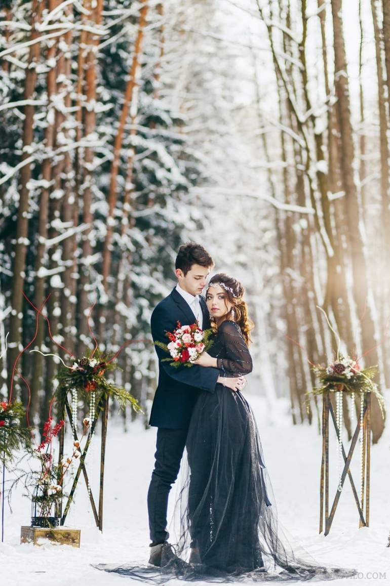 Фотосессия ситцевой свадьбы в зимнюю пору