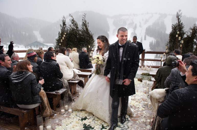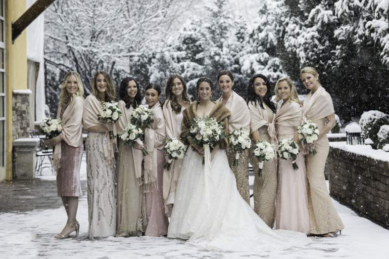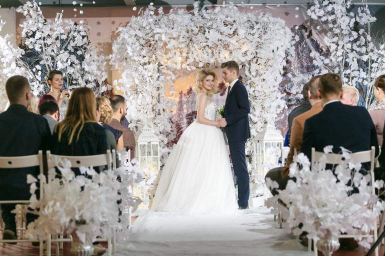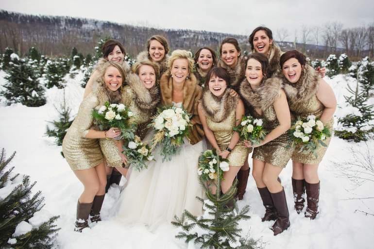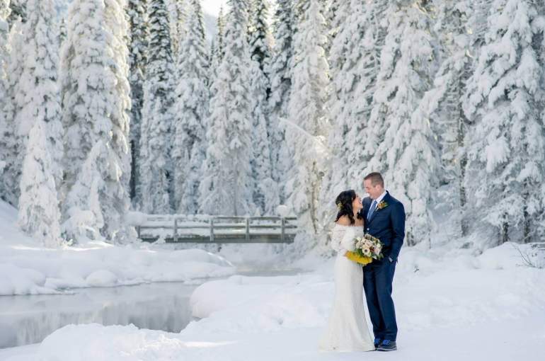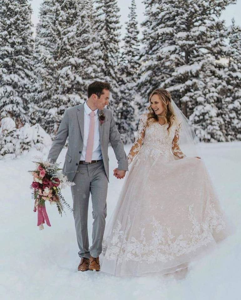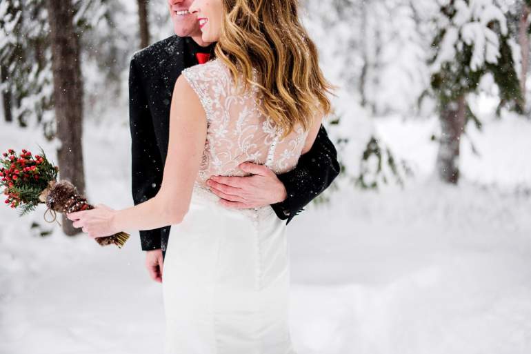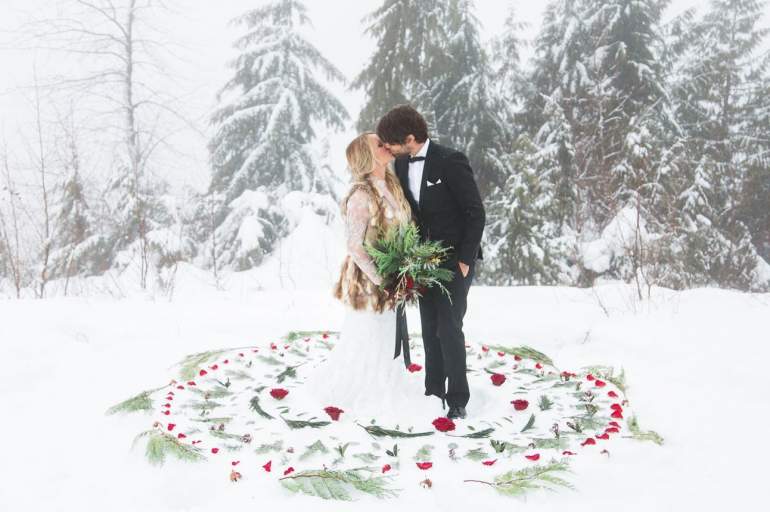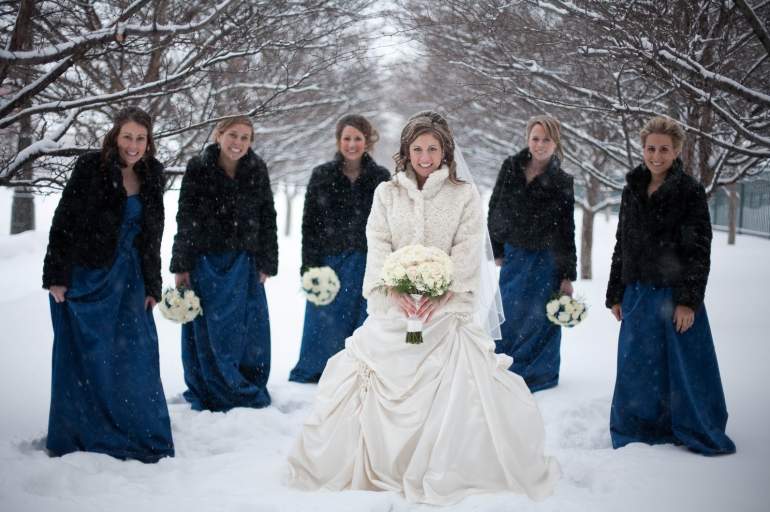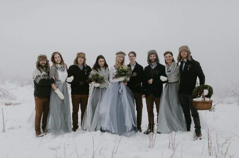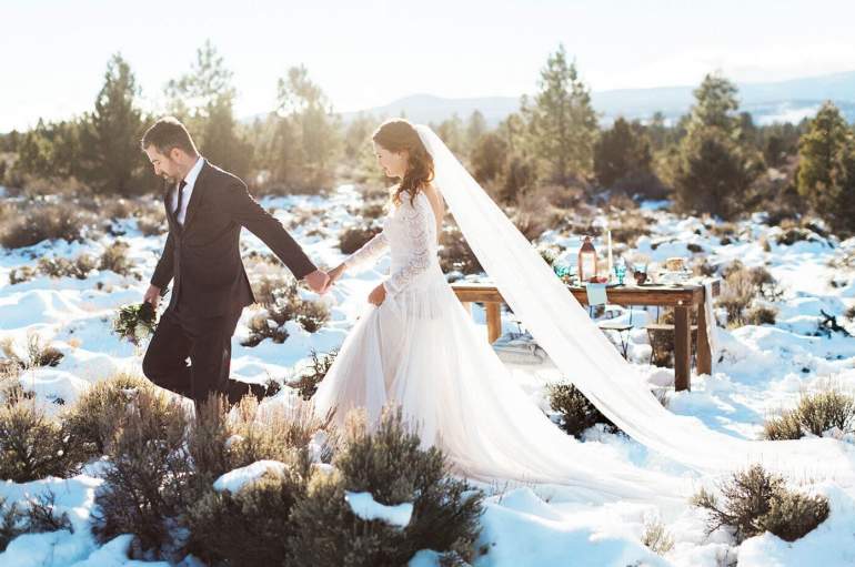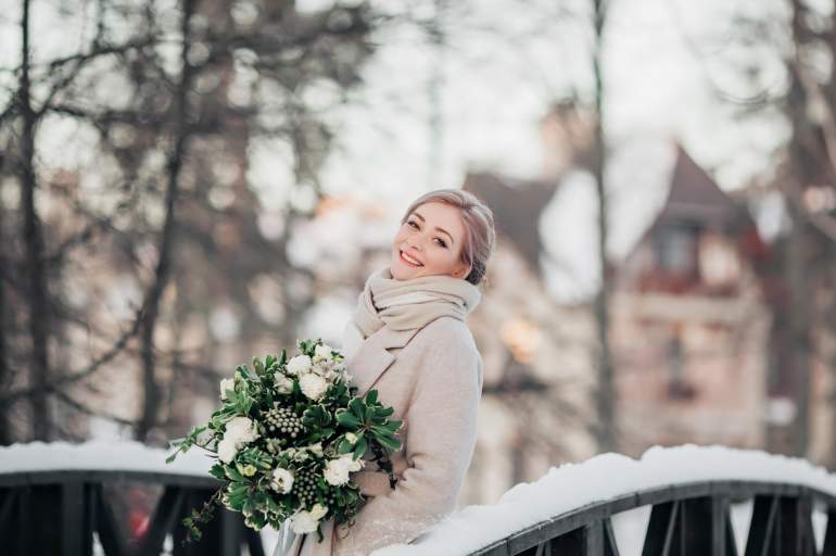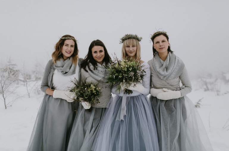 Фотосессия ситцевой свадьбы в зимнюю пору