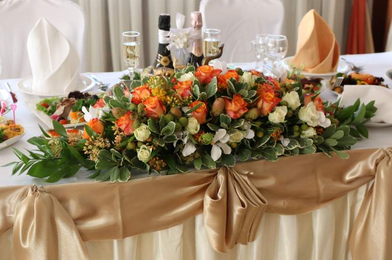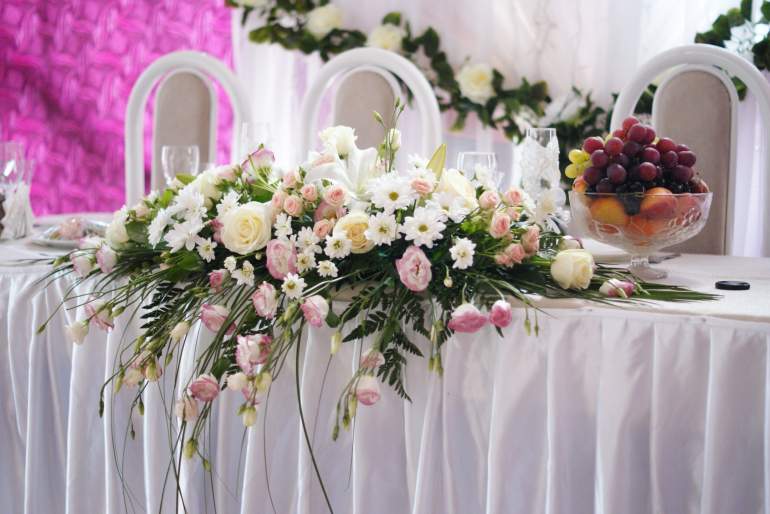 Украшение торжественного стола цветами
