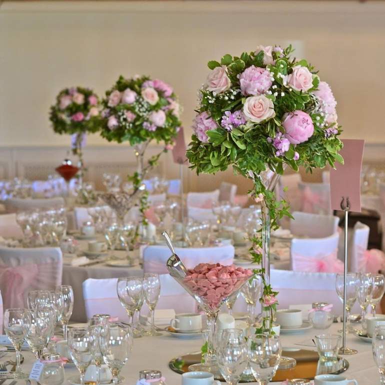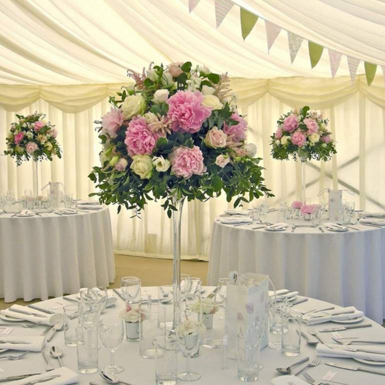 Украшение столов на свадьбу цветами
