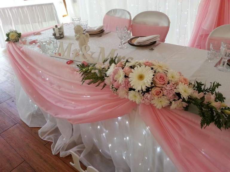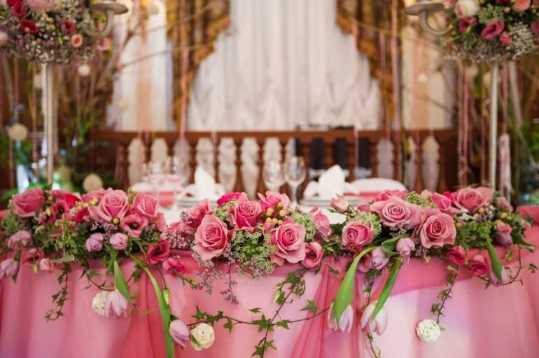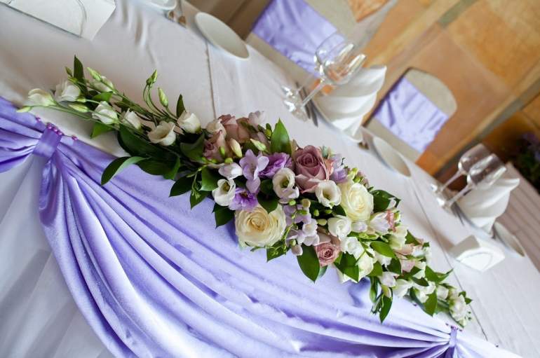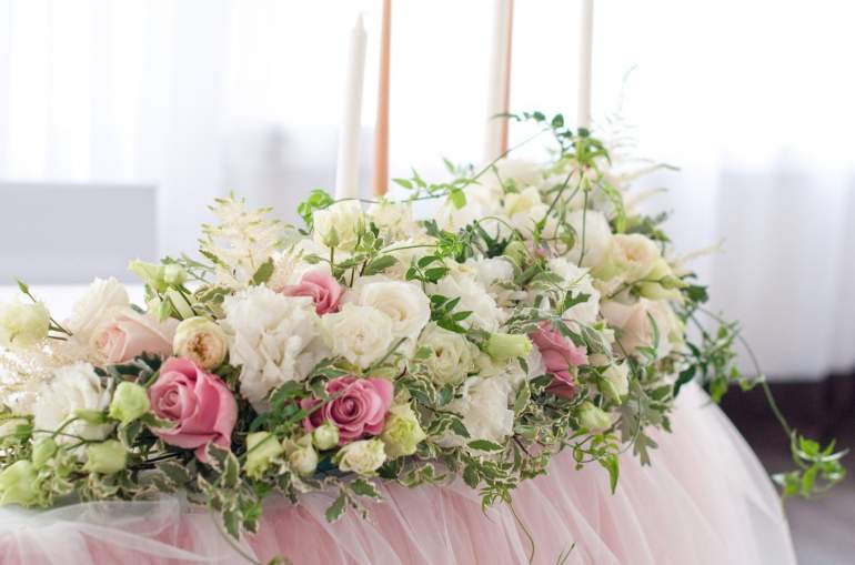 Украшение свадебного стола цветами