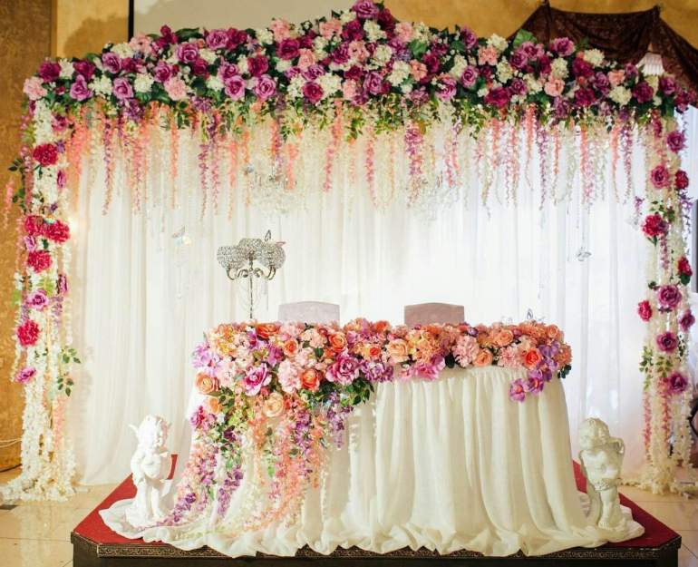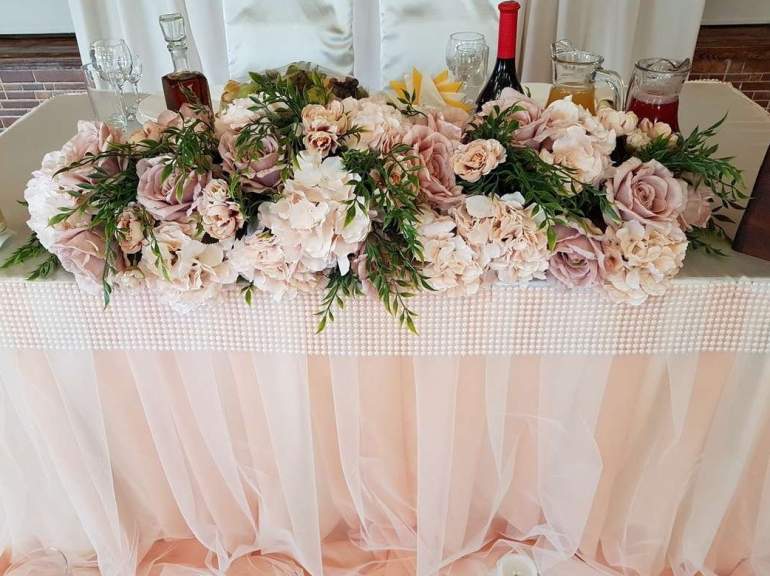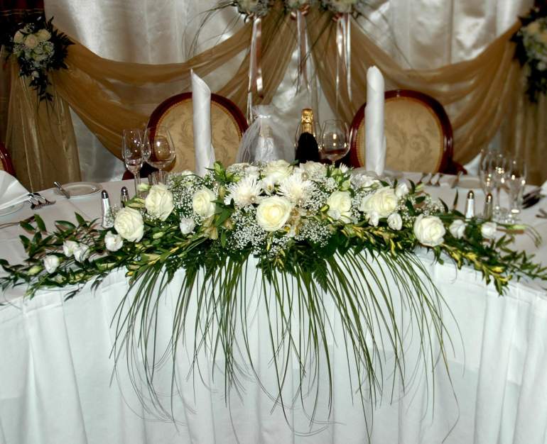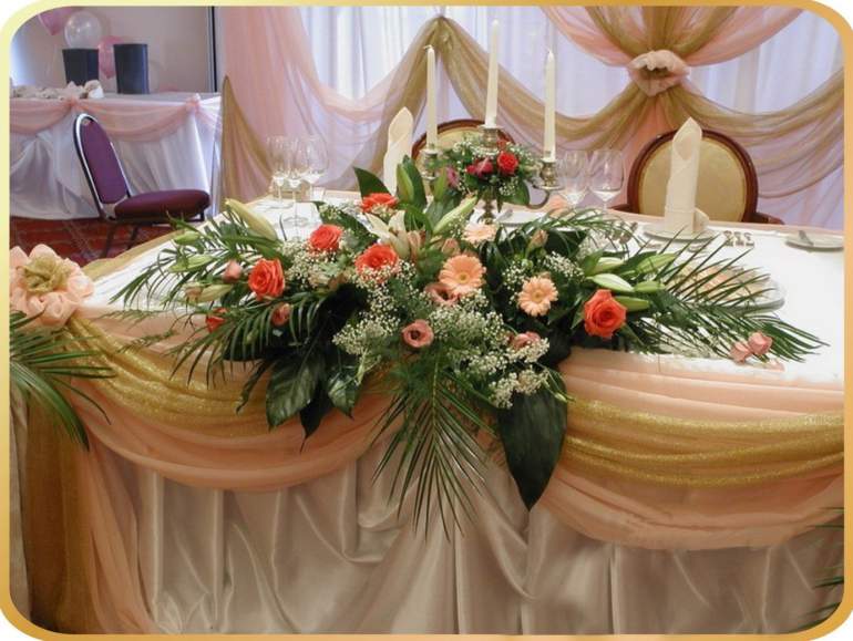 Украшение стола молодоженов цветами
