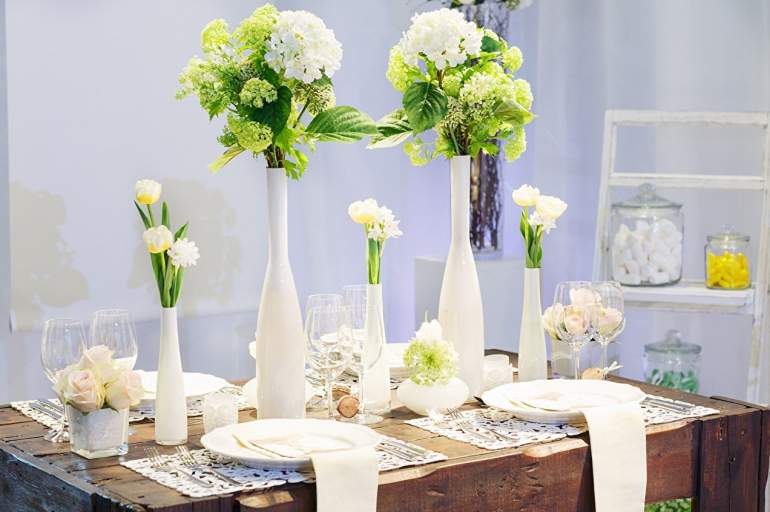 Украшение стола цветами