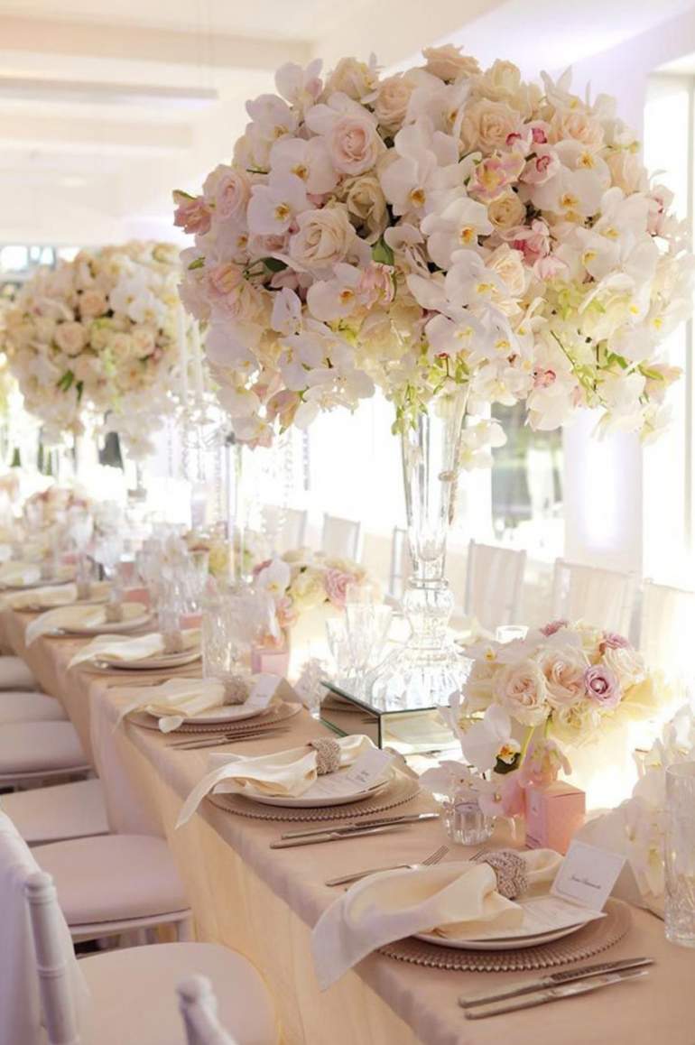 Украшение свадебного стола живыми цветами