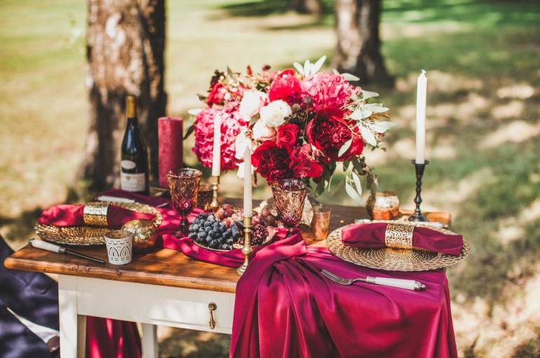 Сервировка в бордовых тонах