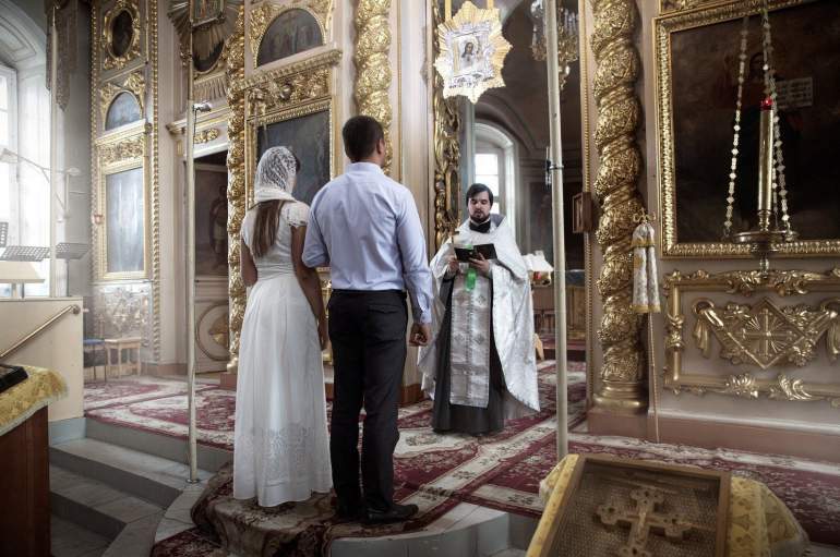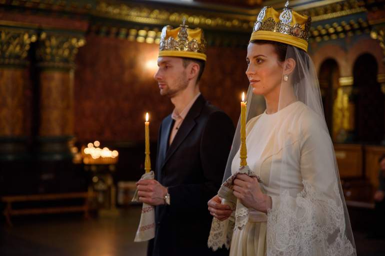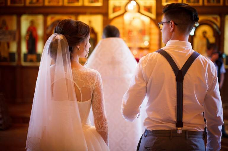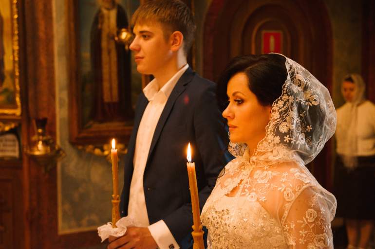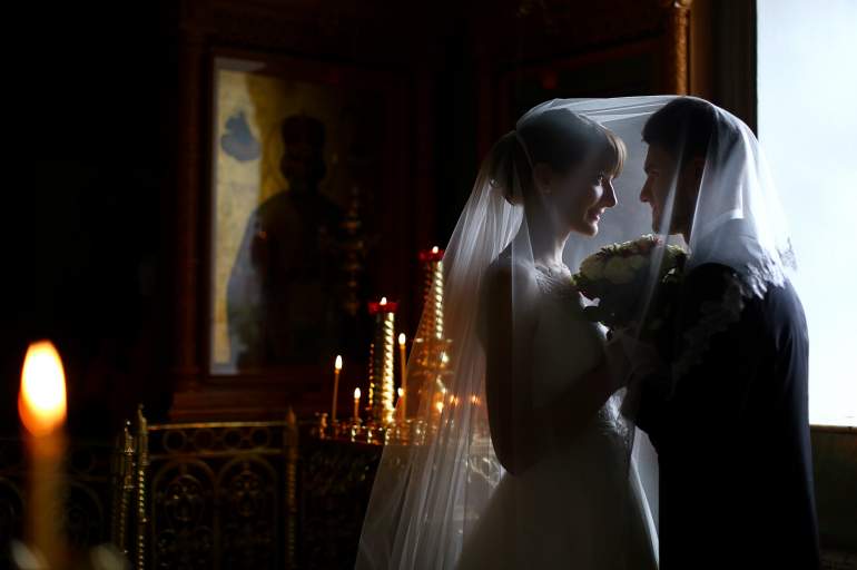 Жених и жена в церкви