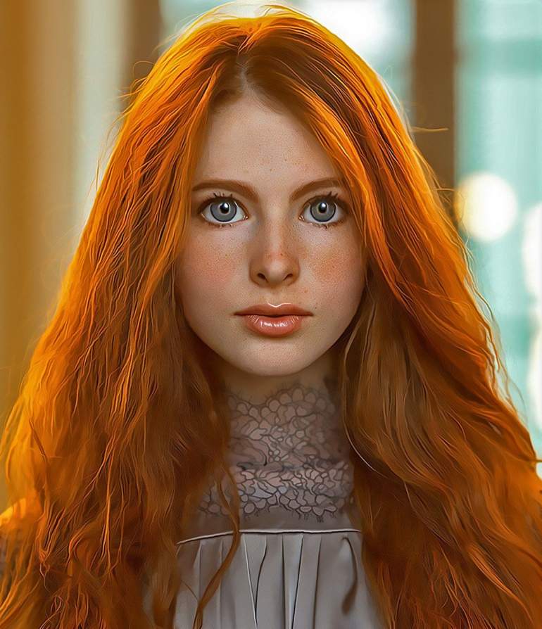 Рыжая с голубыми глазами