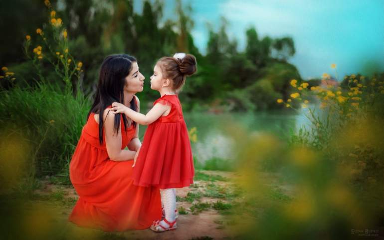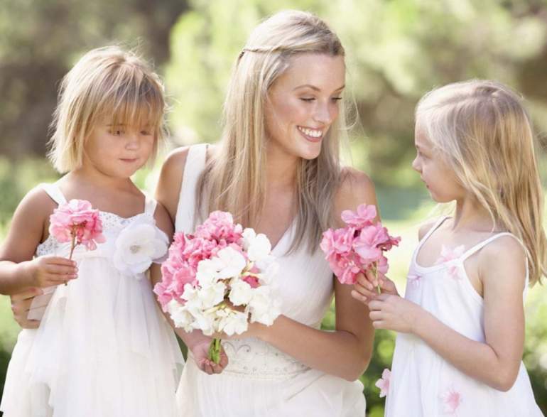 Мать и дочка с цветами