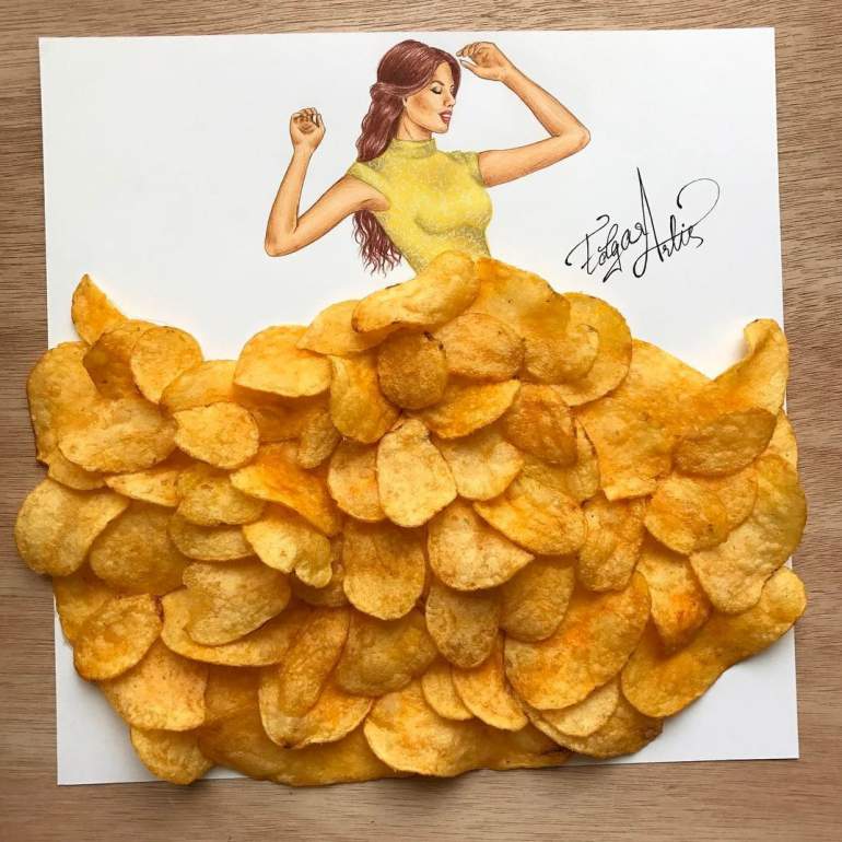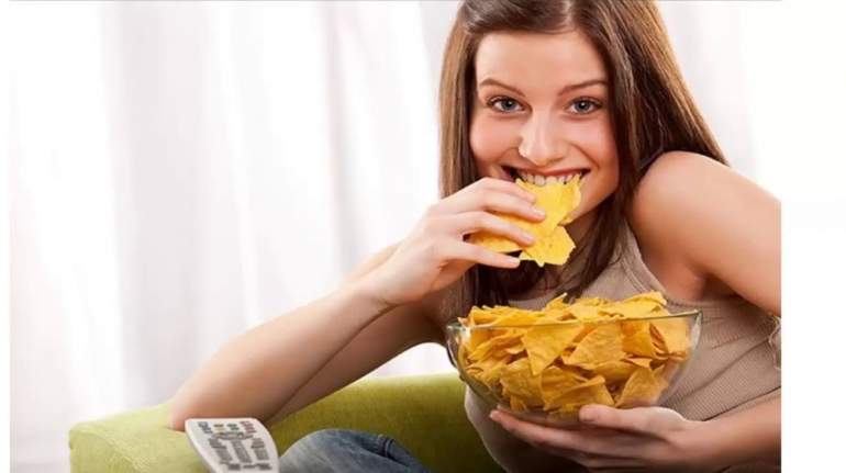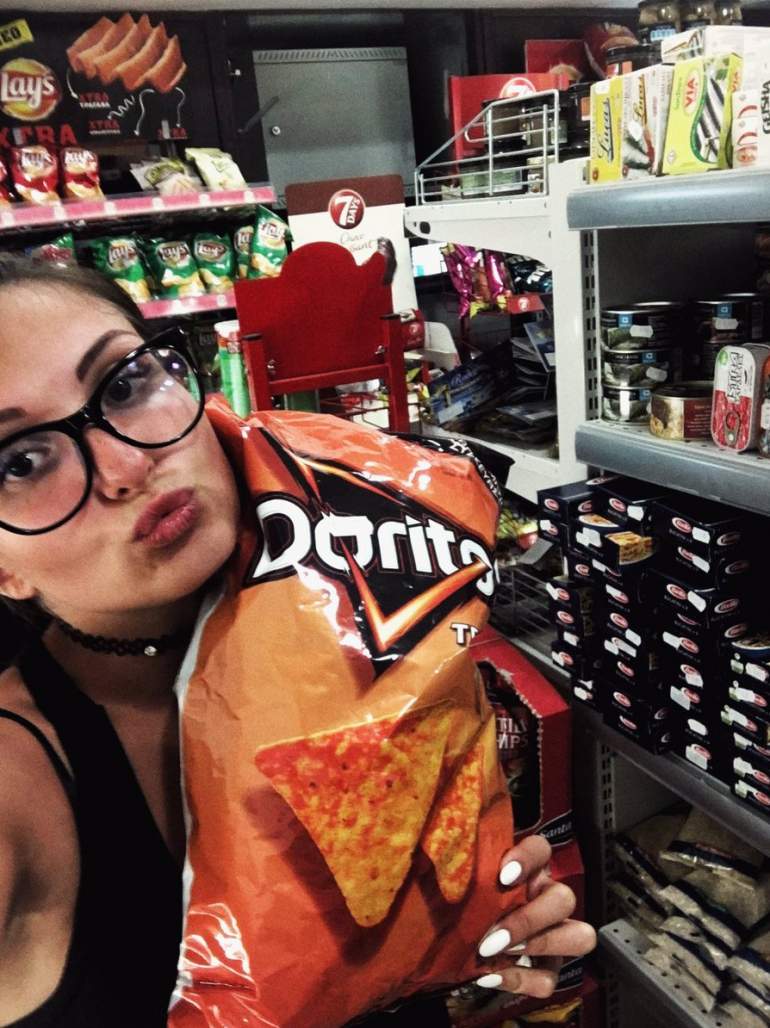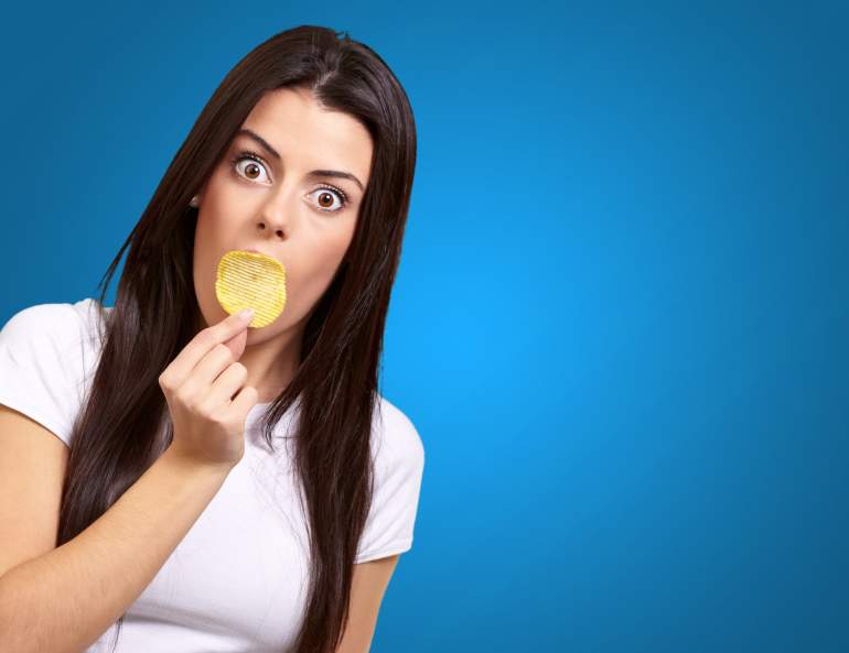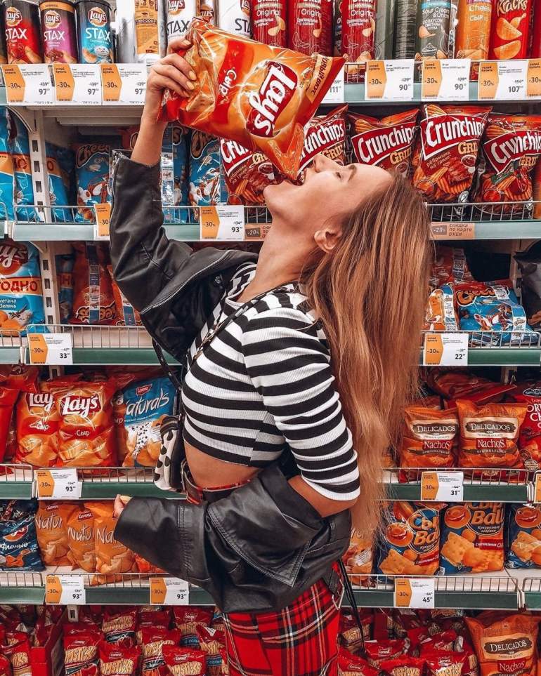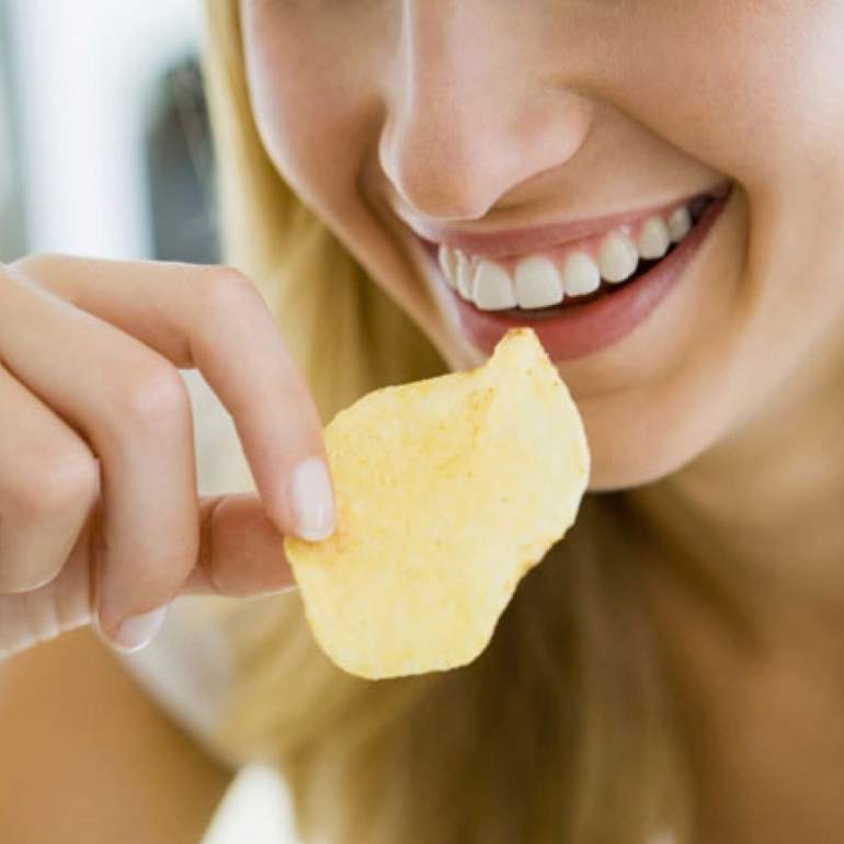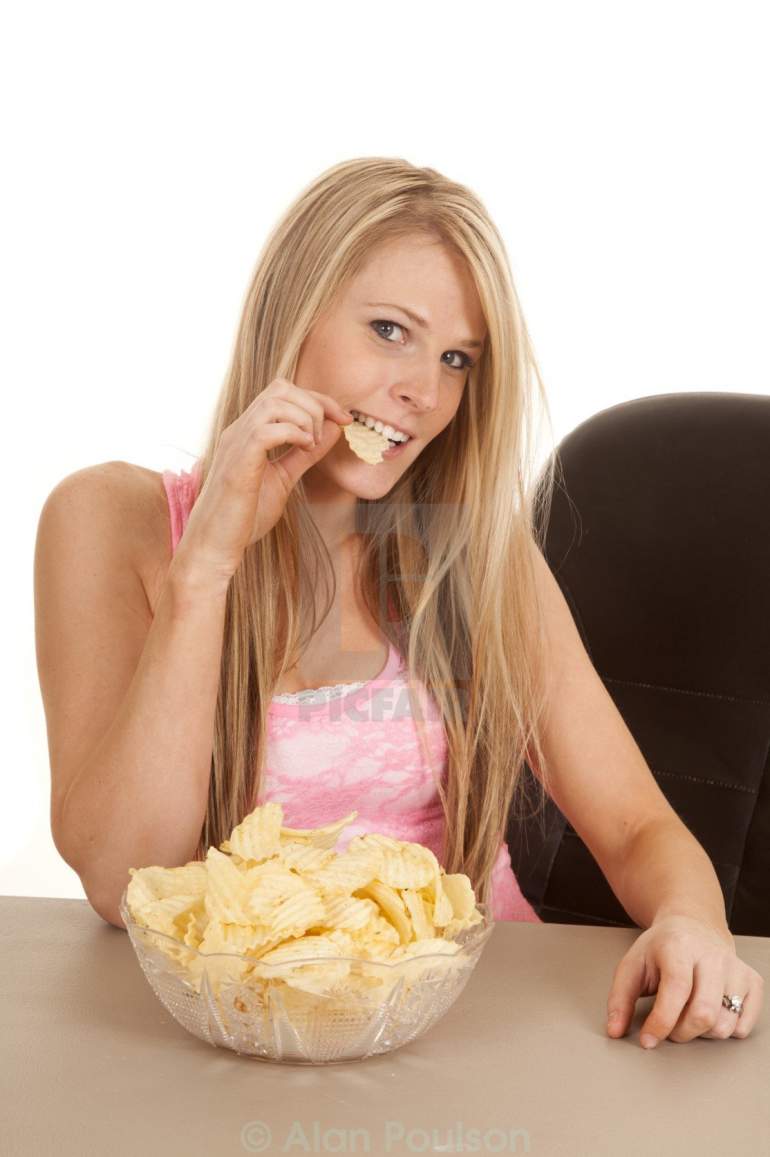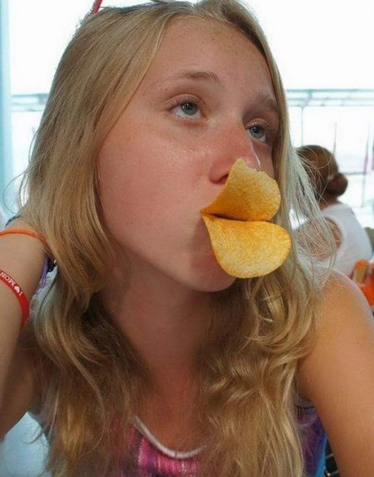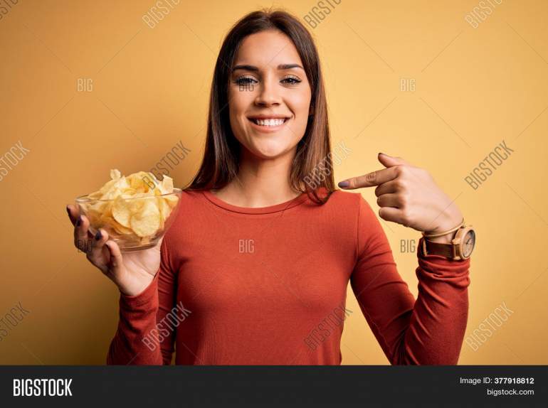 Девушка красавица с тарелкой чипсов очаровательные очень классные картинки