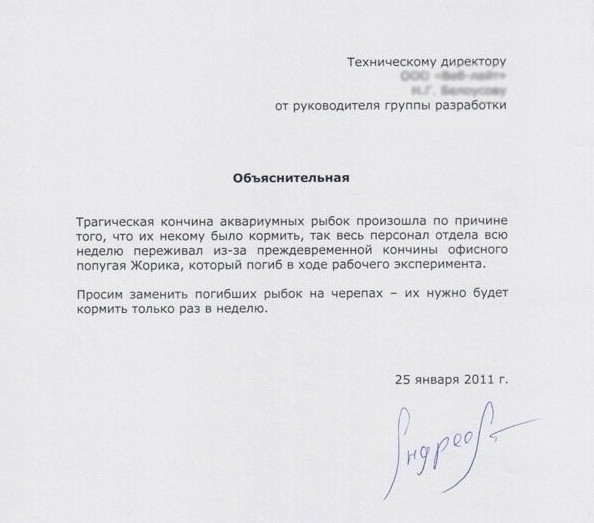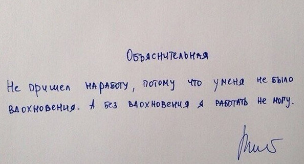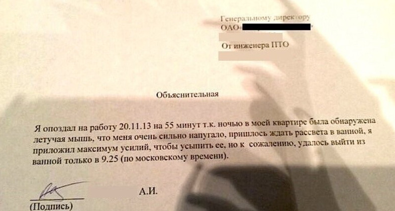 15 объяснительных, которые трудно прочесть без улыбки Что ж, в трудовом коллективе свои законы, и иногда проштрафившемуся сотруднику приходится писать для управления подобные бумаги. Но такие шедевры удаются, естественно, не каждому))