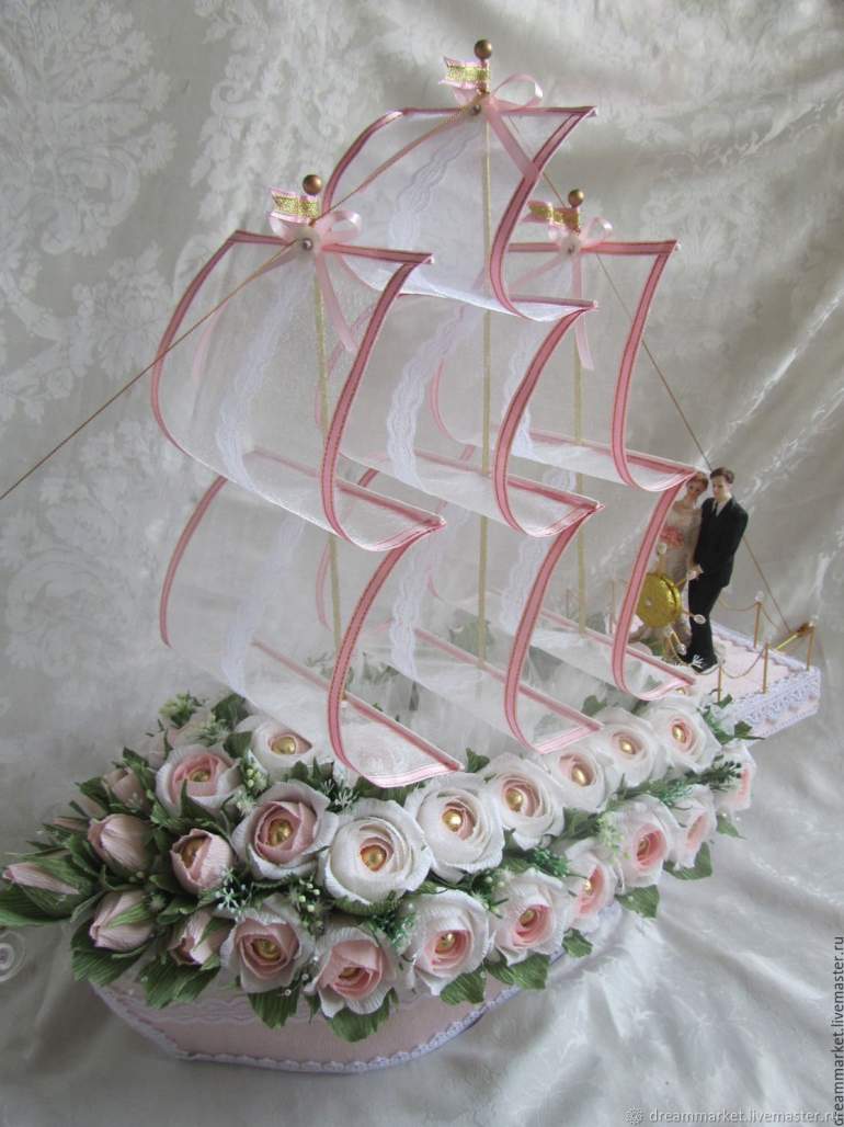 Свадебный корабль из конфет