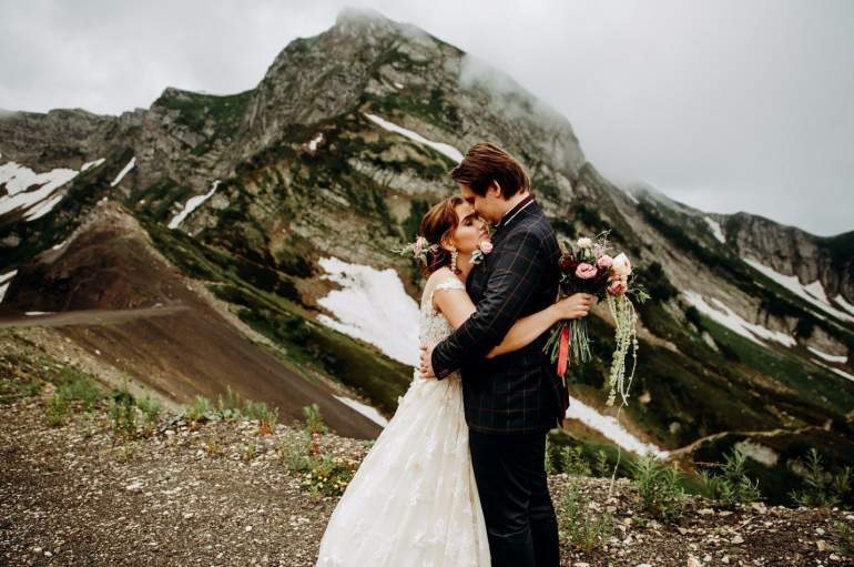 Свадебная фотосессия в горах в летнюю пору
