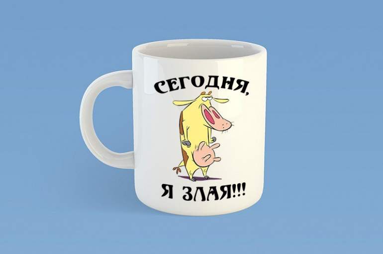 Смешная скотина на чашечке.