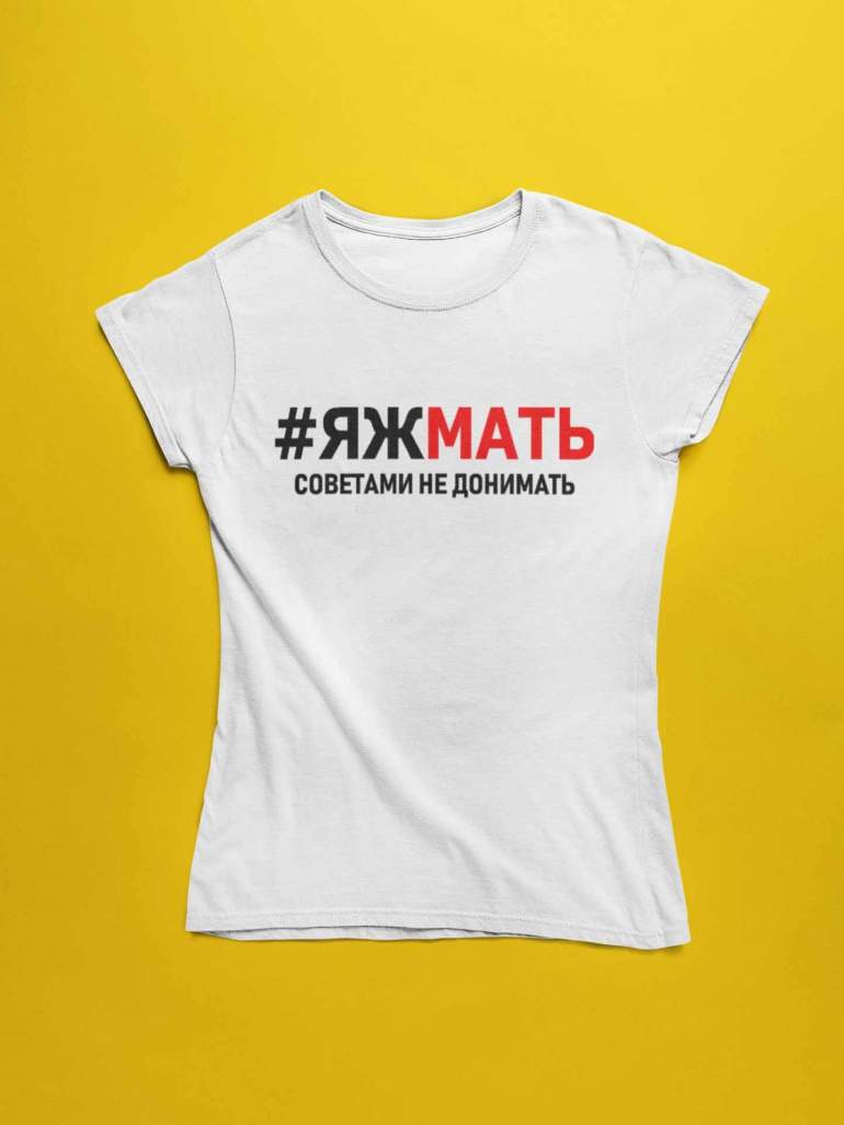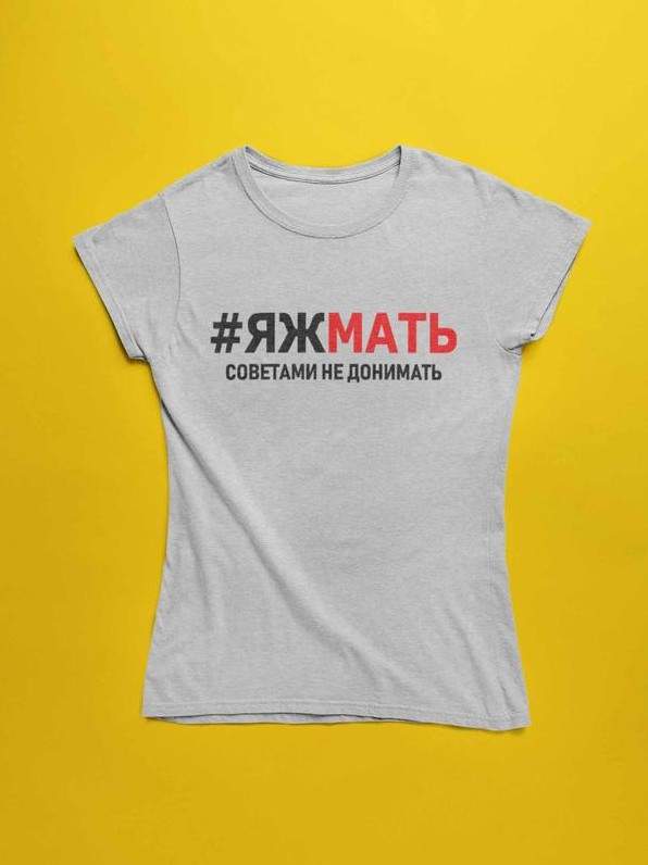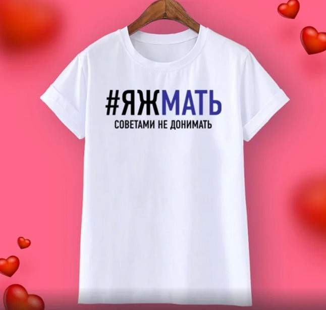 Надпись яжемать на одежде.