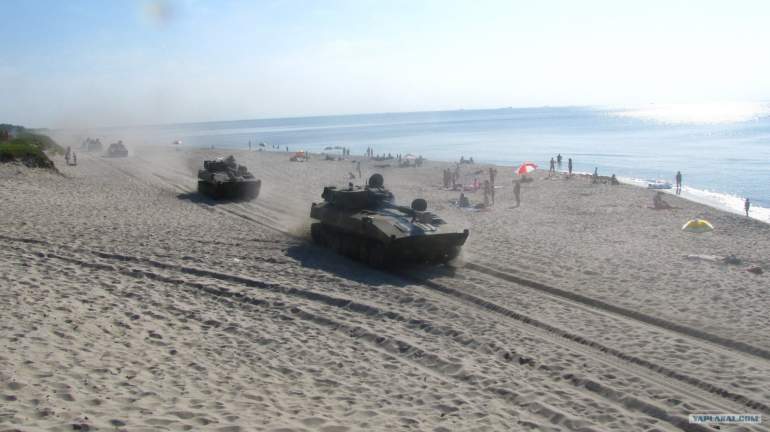 Танки на пляже.