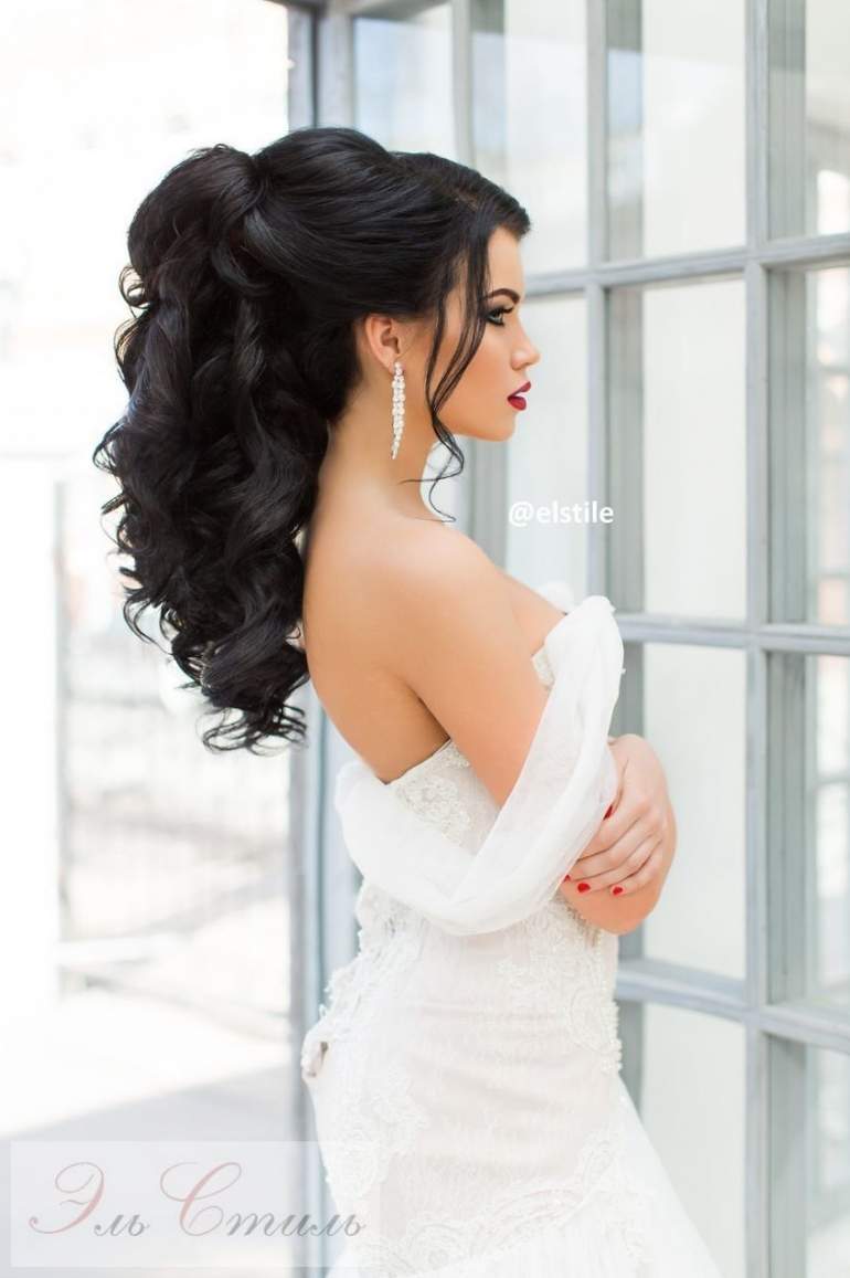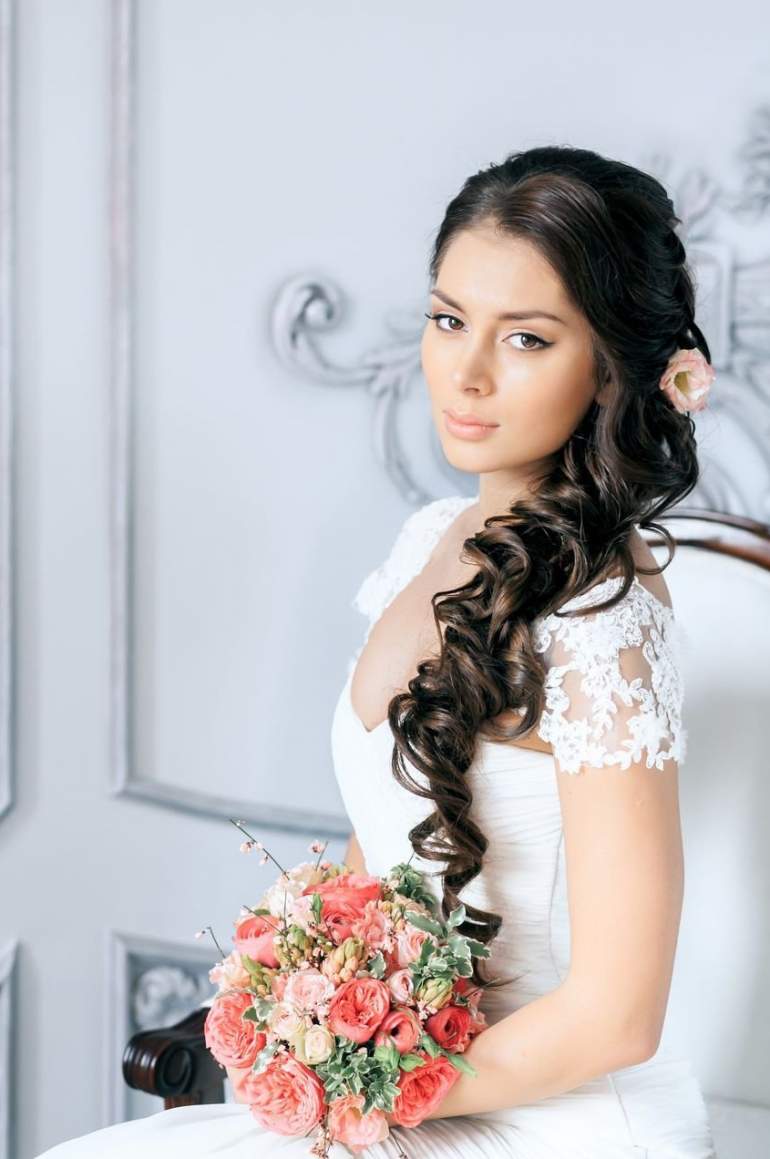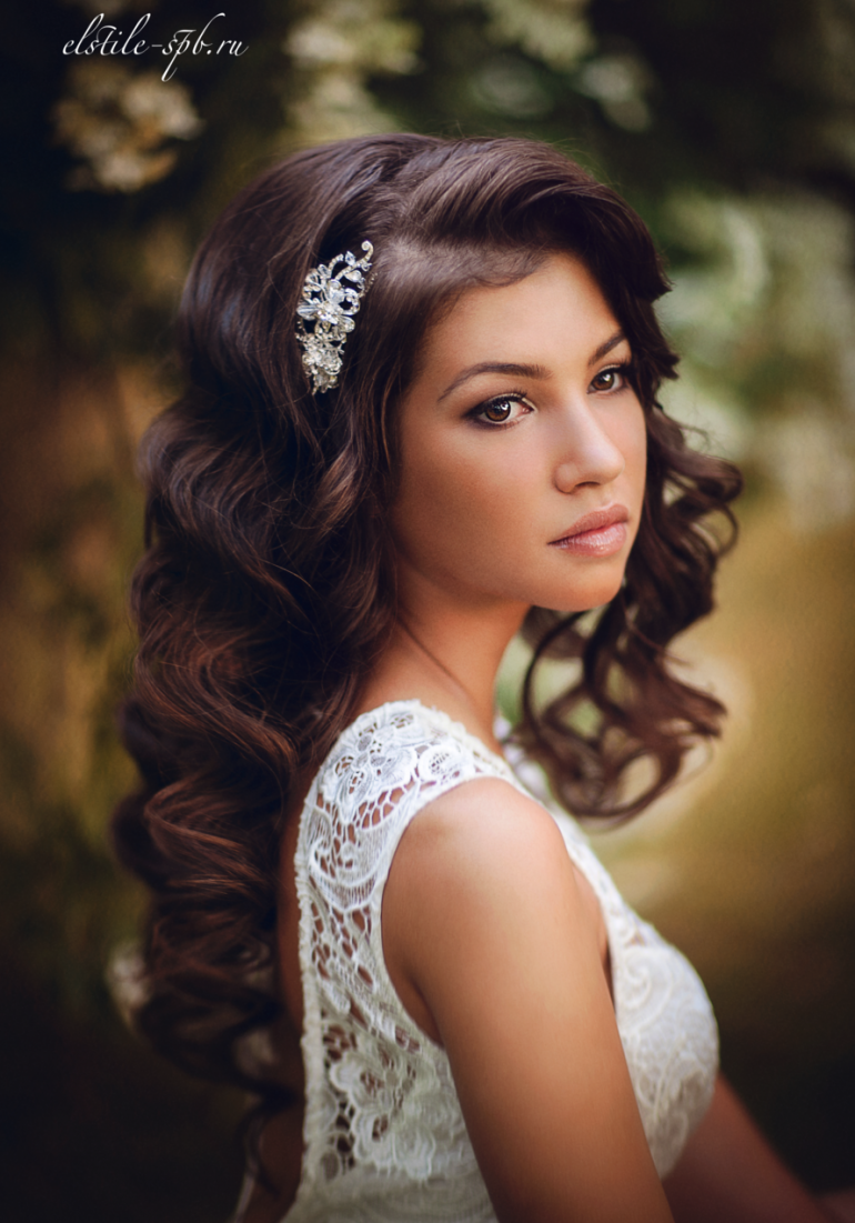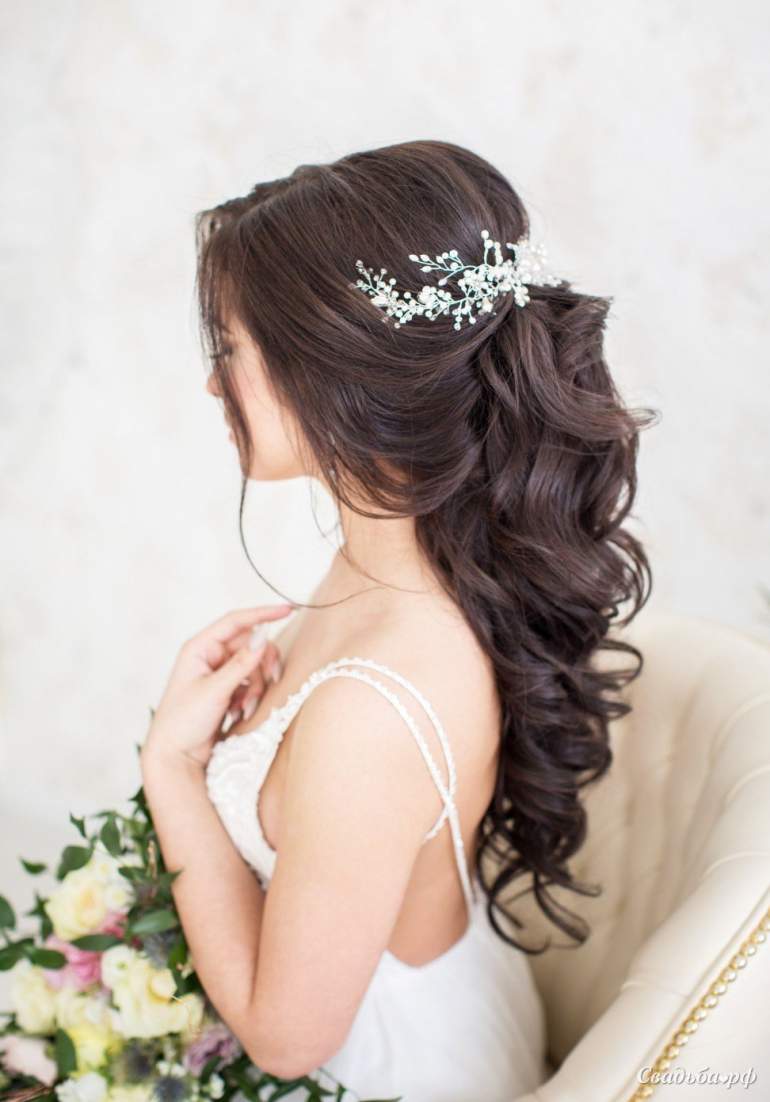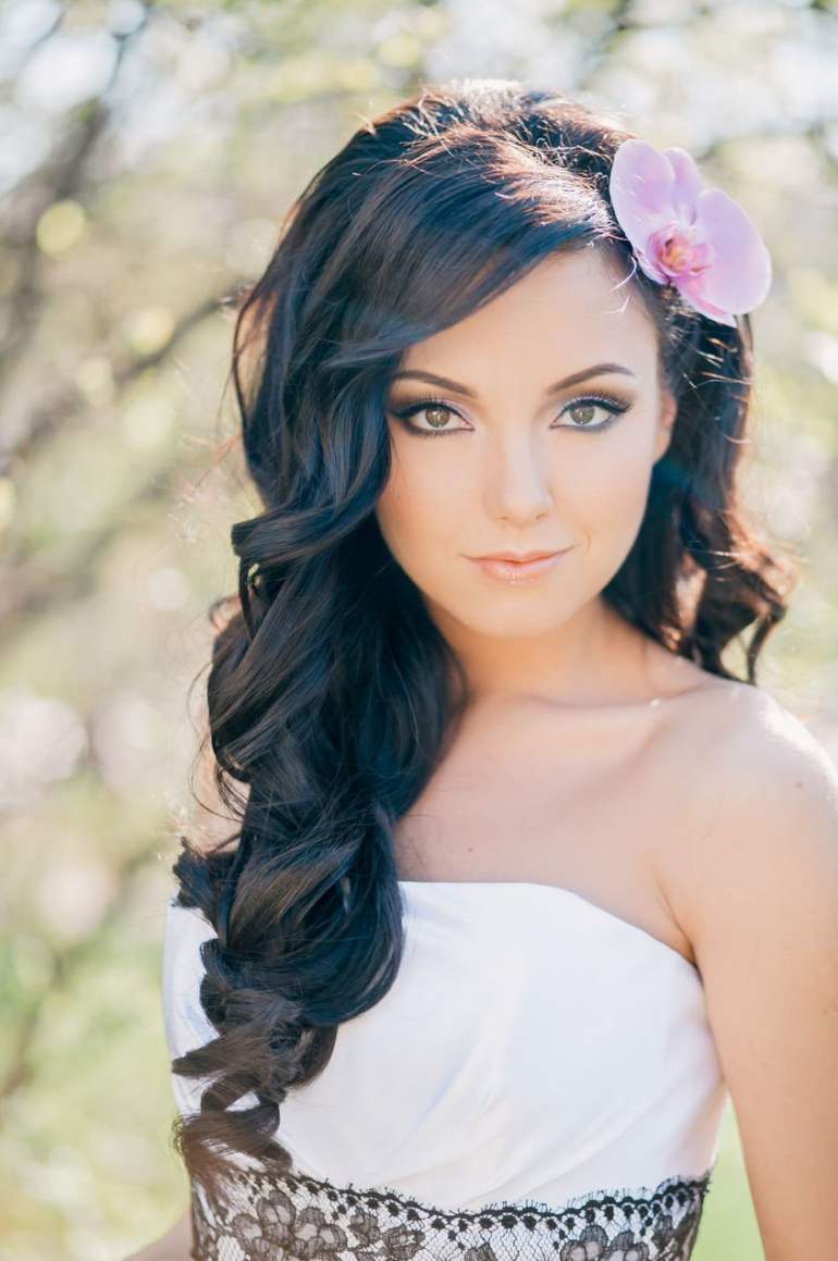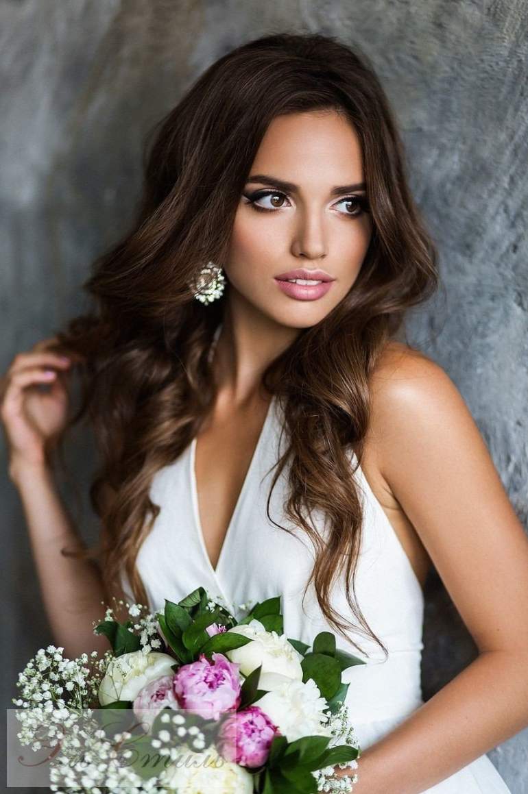 Прическа на свадьбу на длинные волосы подружке брюнетки