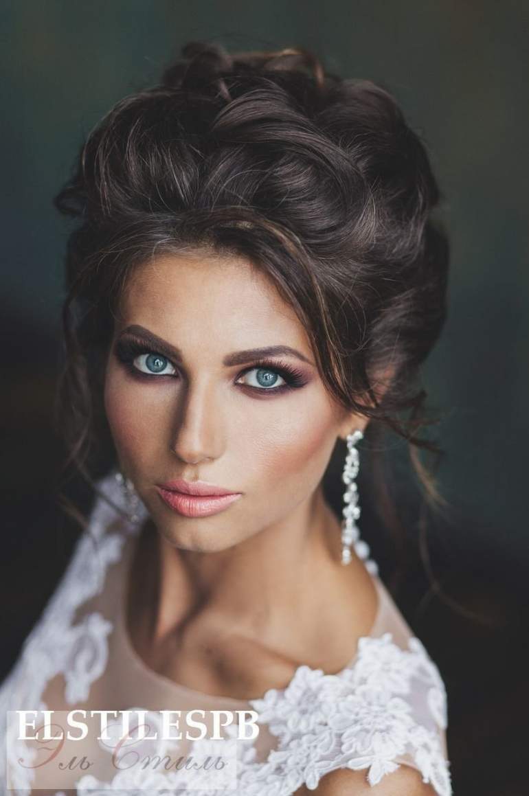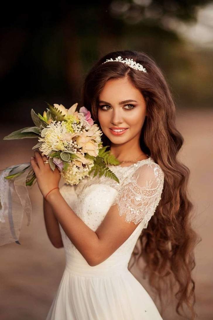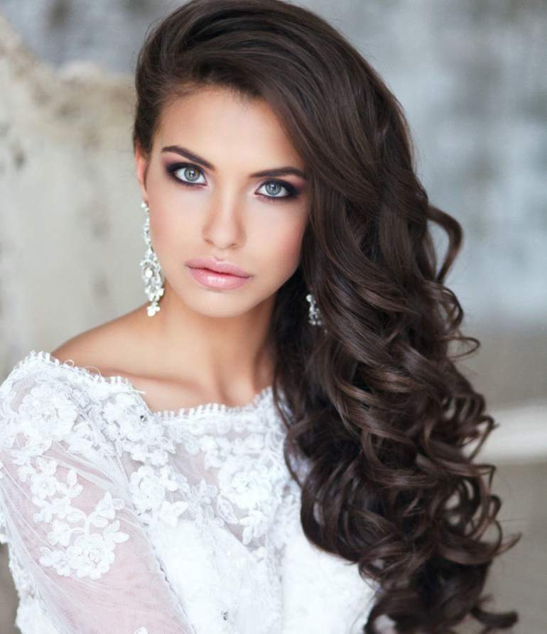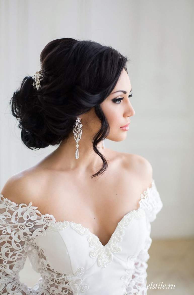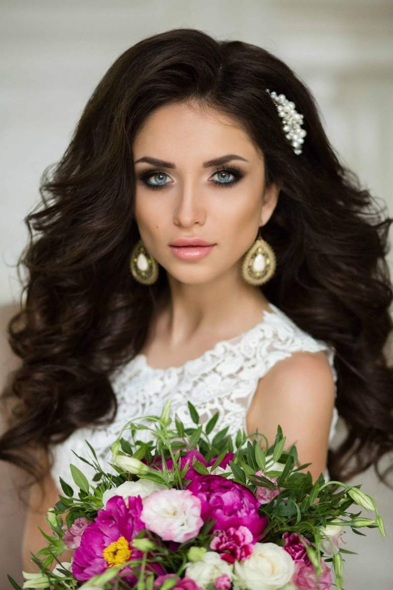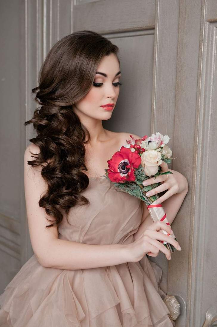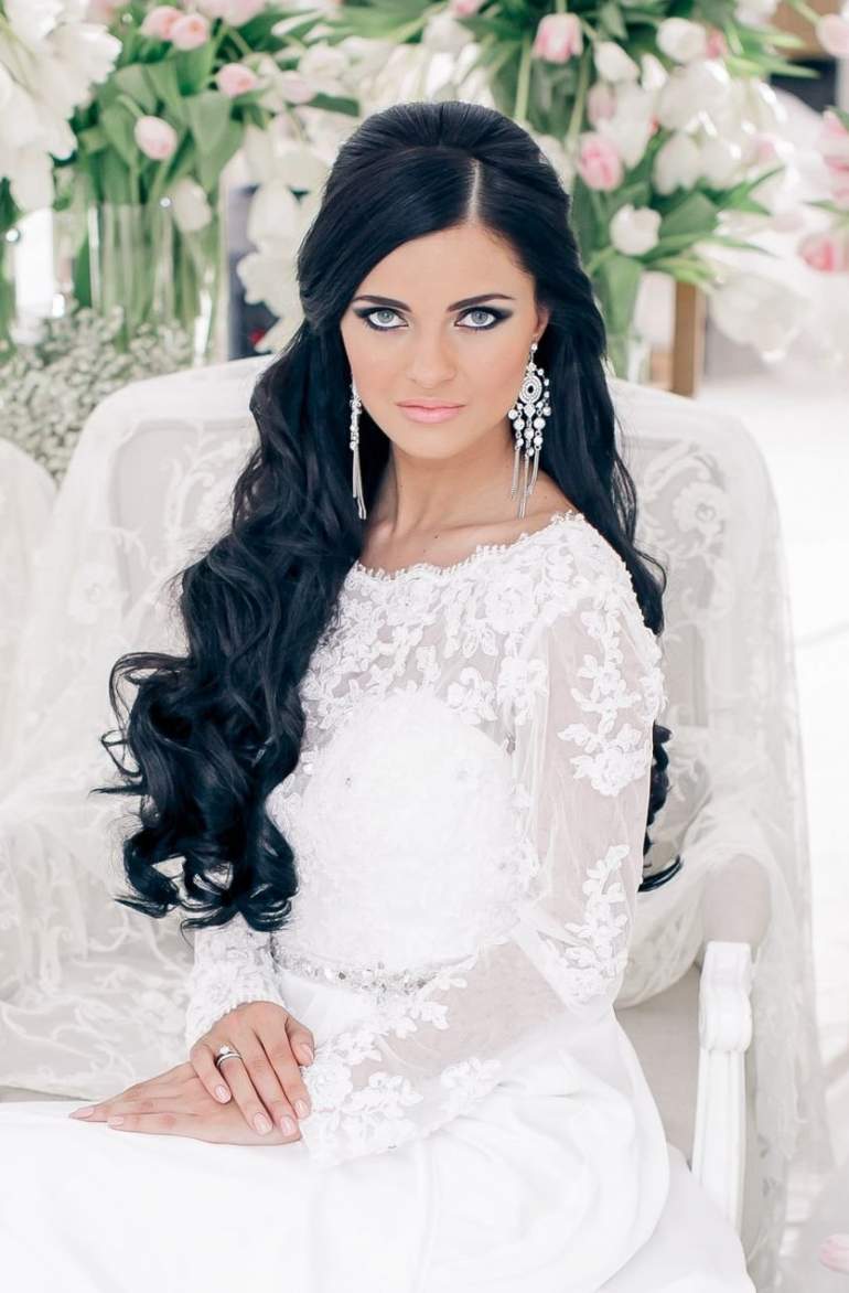 Прическа на свадьбу на длинные волосы подружке брюнетки
