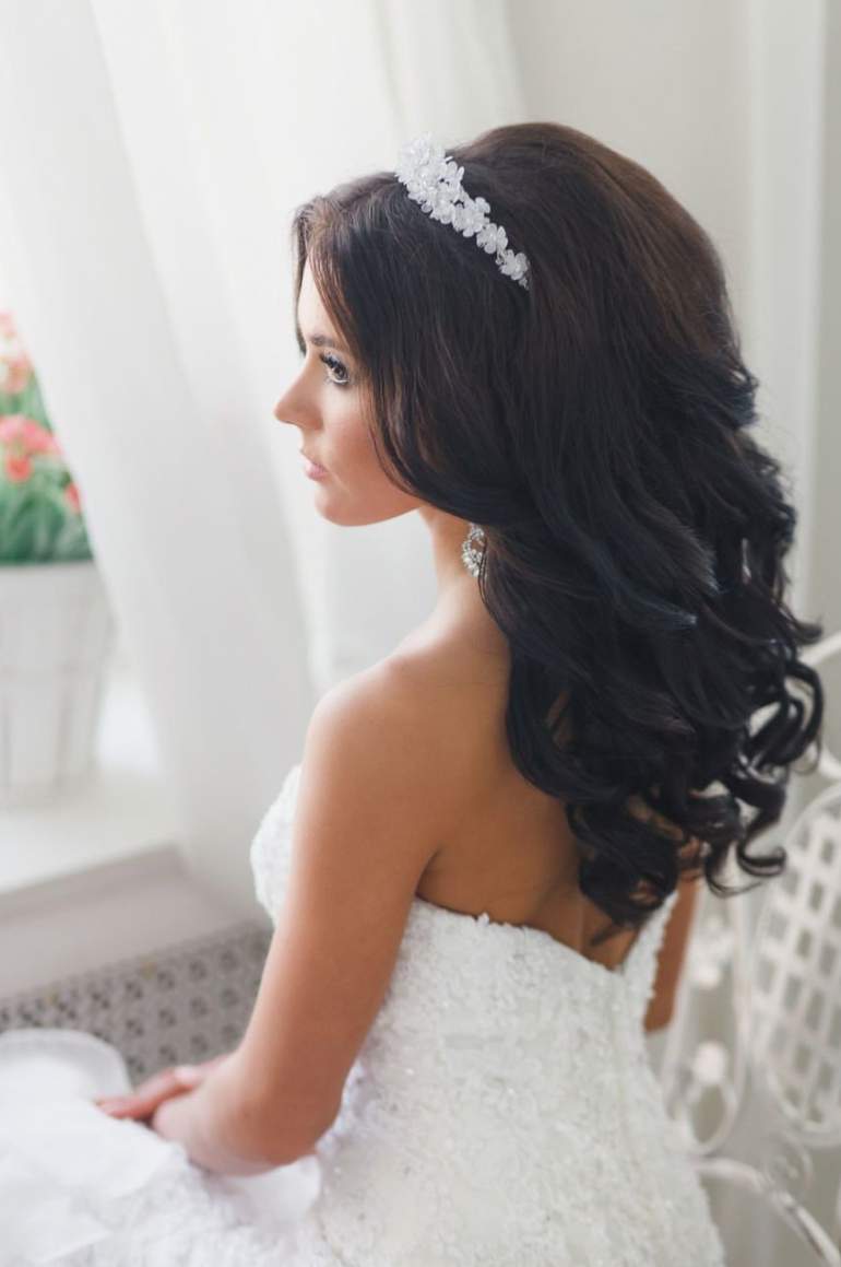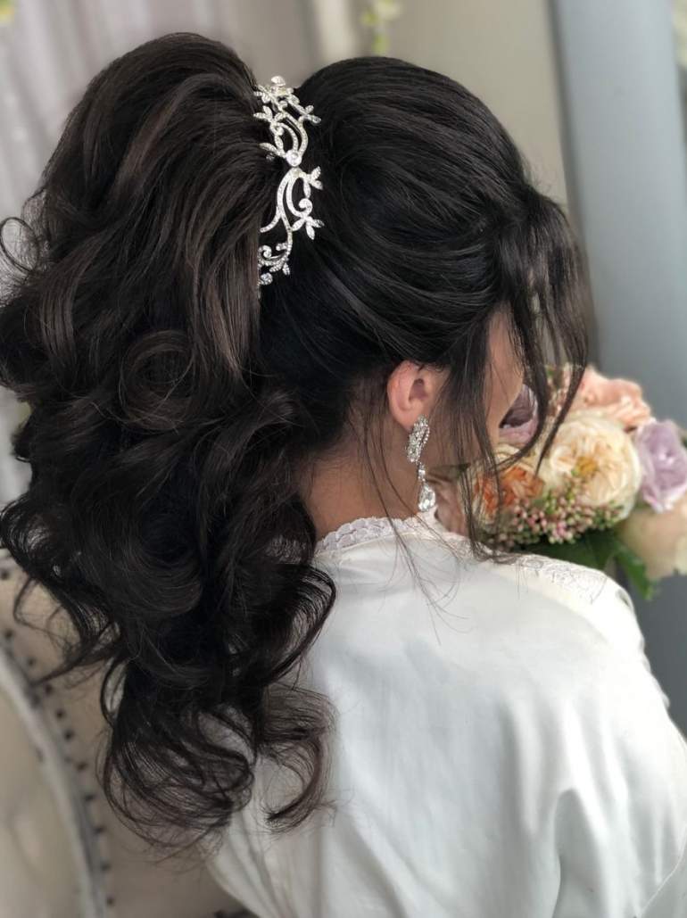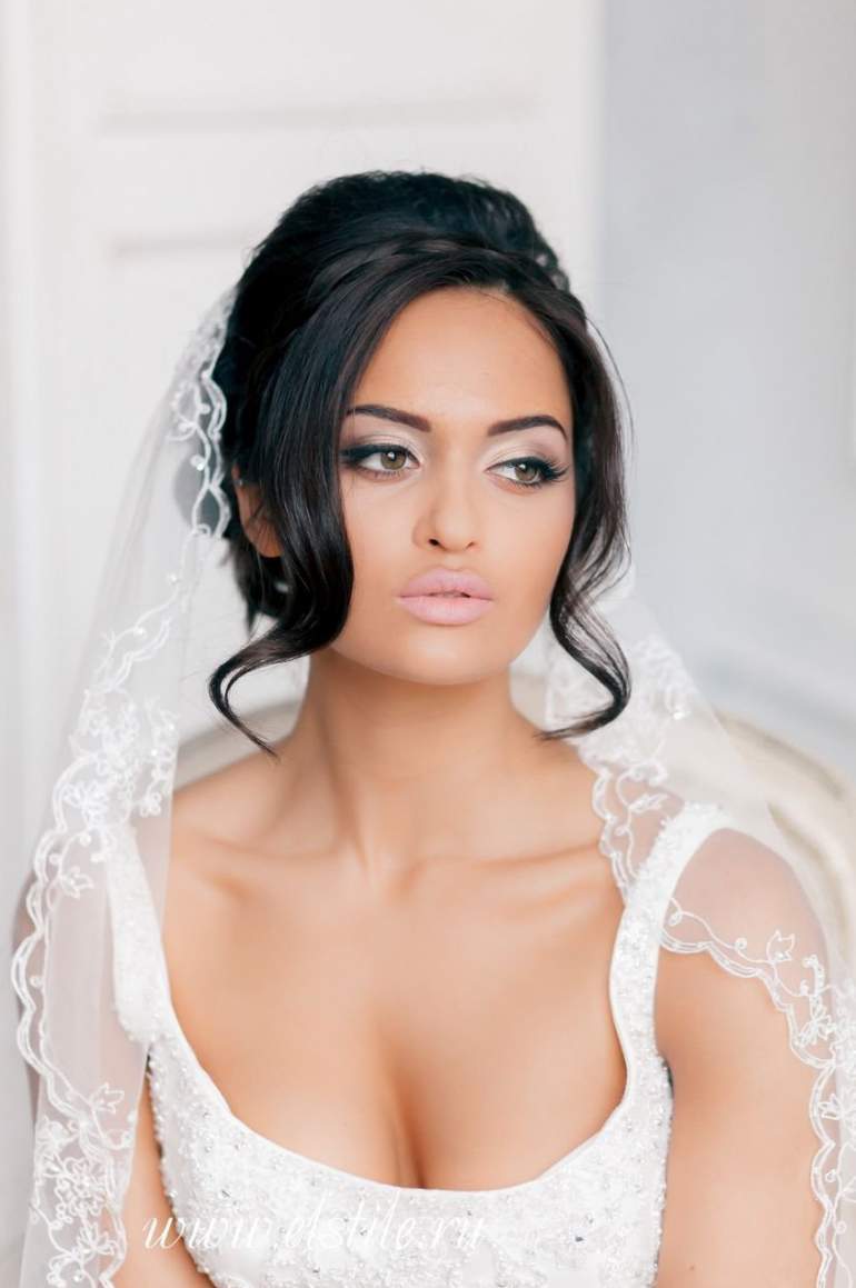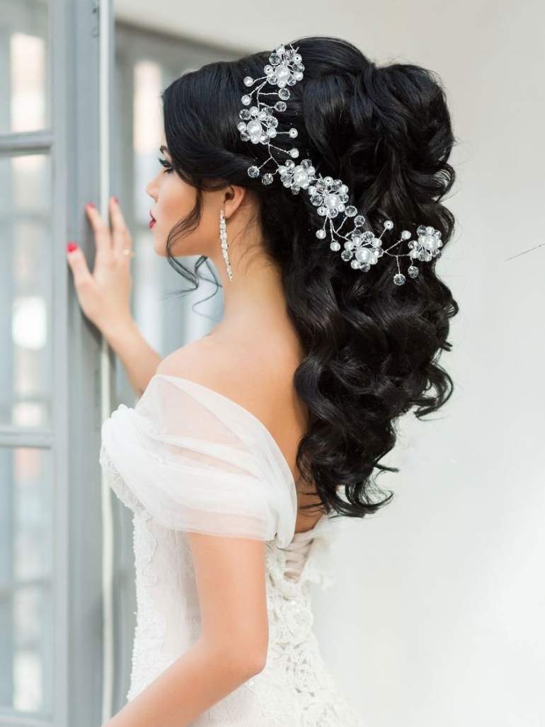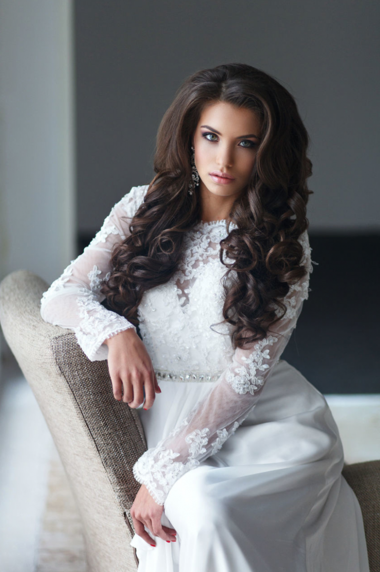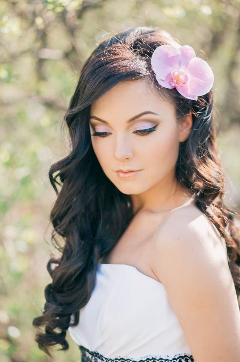 Прическа на свадьбу на длинные волосы подружке брюнетки