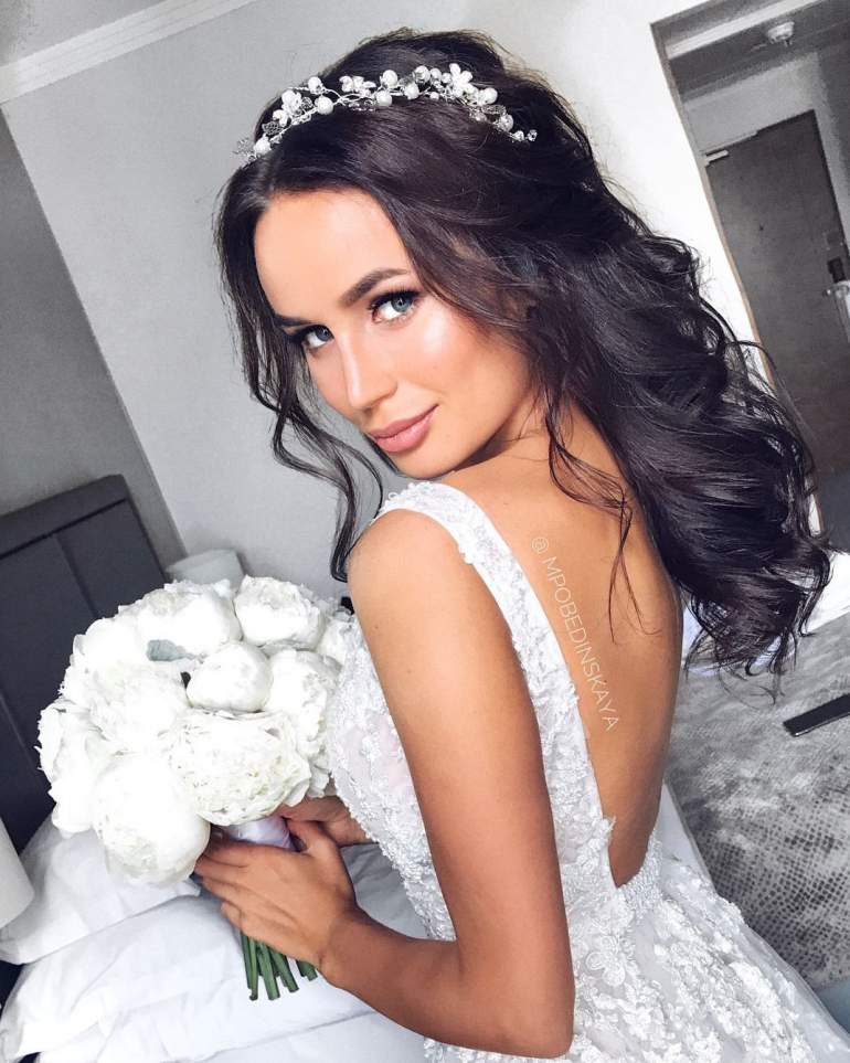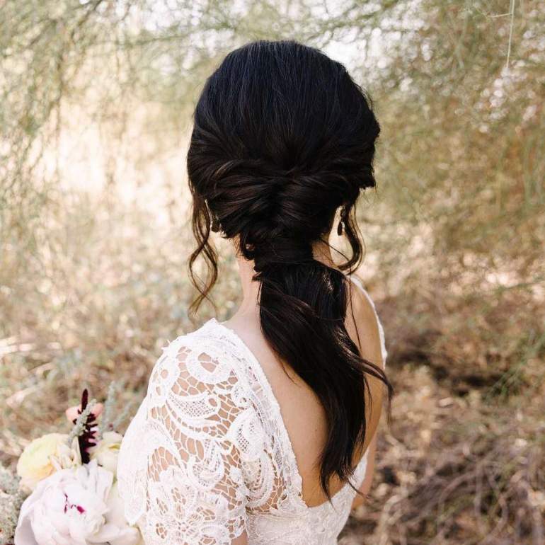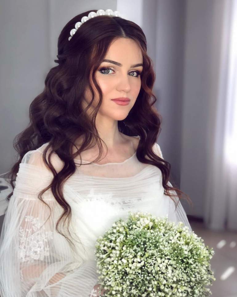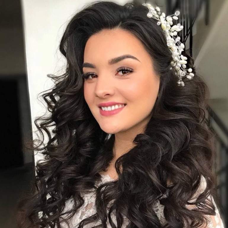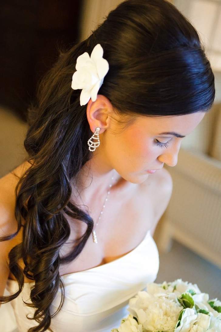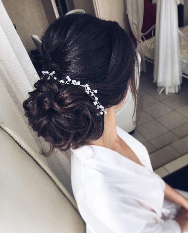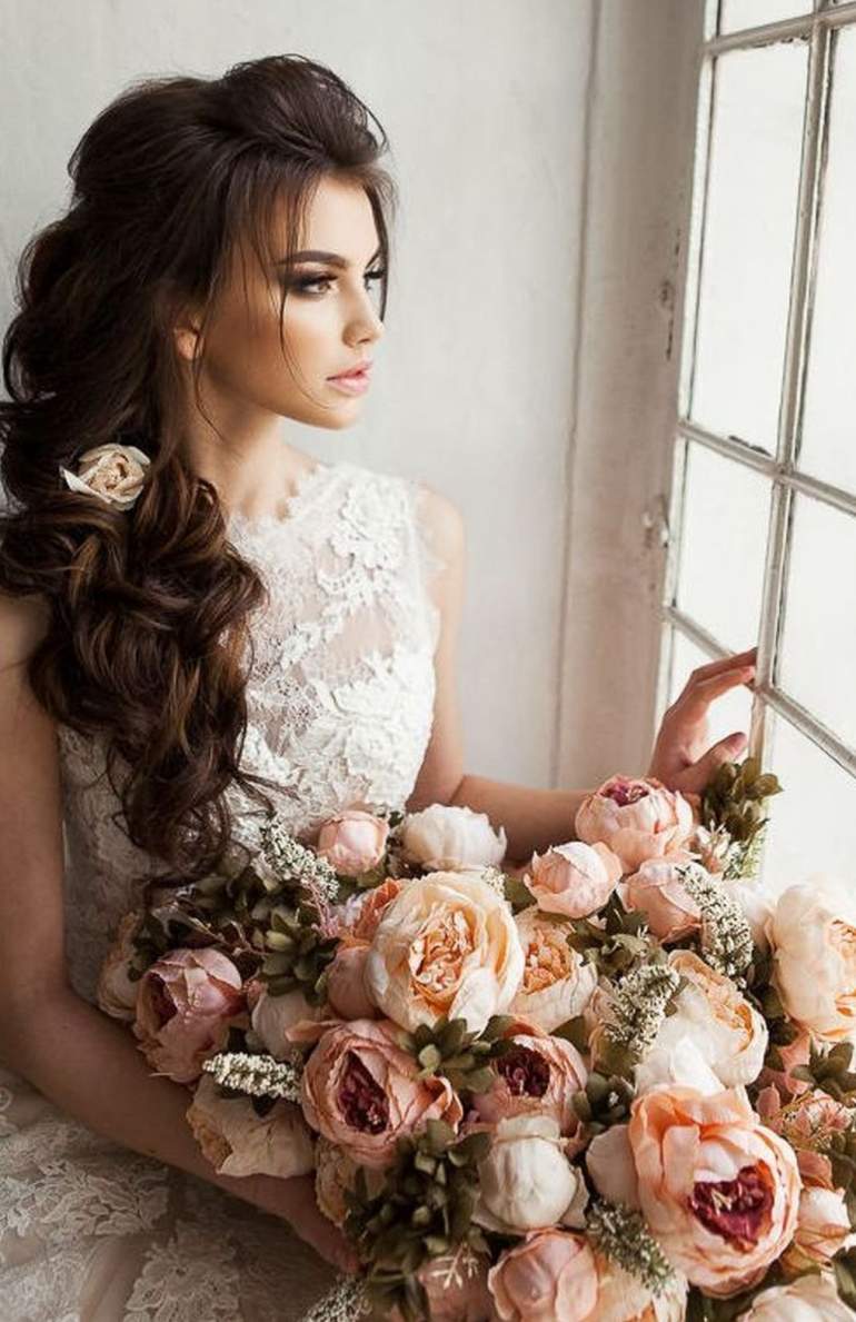 Прическа на свадьбу на длинные волосы подружке брюнетки