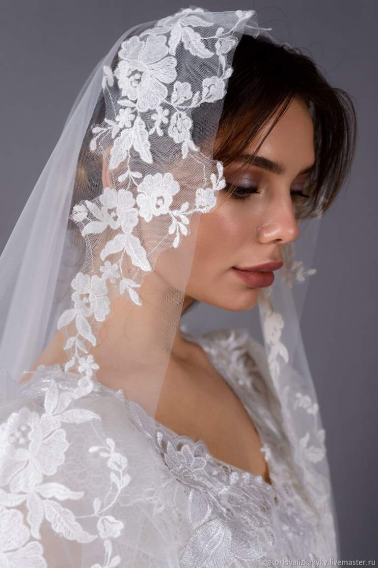 Прически для фаты с кружевом