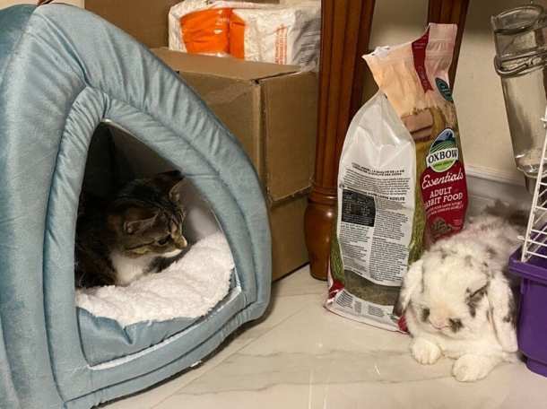 Стоило мне купить лежанку для зайчика, как мой кот тут же её оккупировал