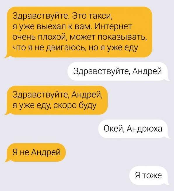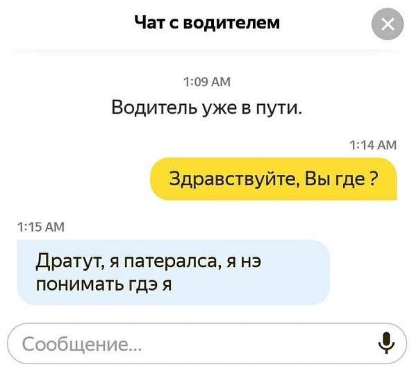 Прикольный чат с таксистом.