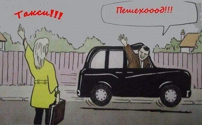 Такси и пешеход.